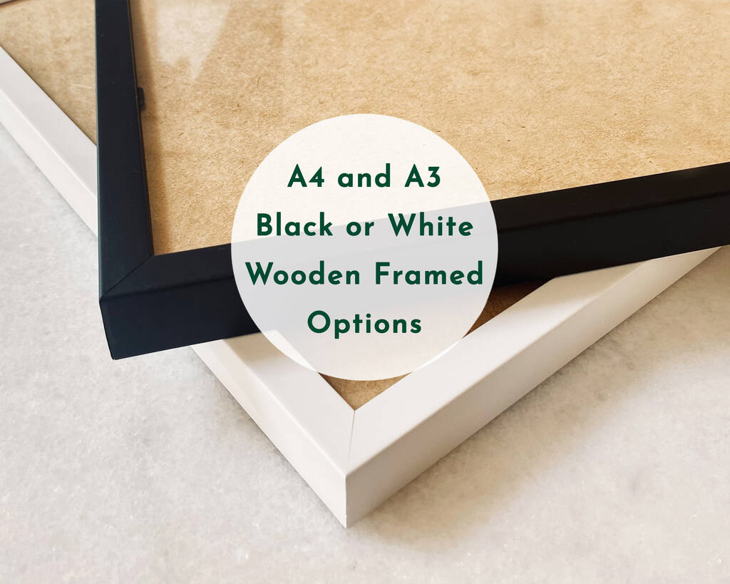 You can also select a Ready Framed A4 or A3 size Print - the perfect way for sending directly as a gift to family or friends for Birthdays and at Christmas. Choose either Black or White finished wooden frames.