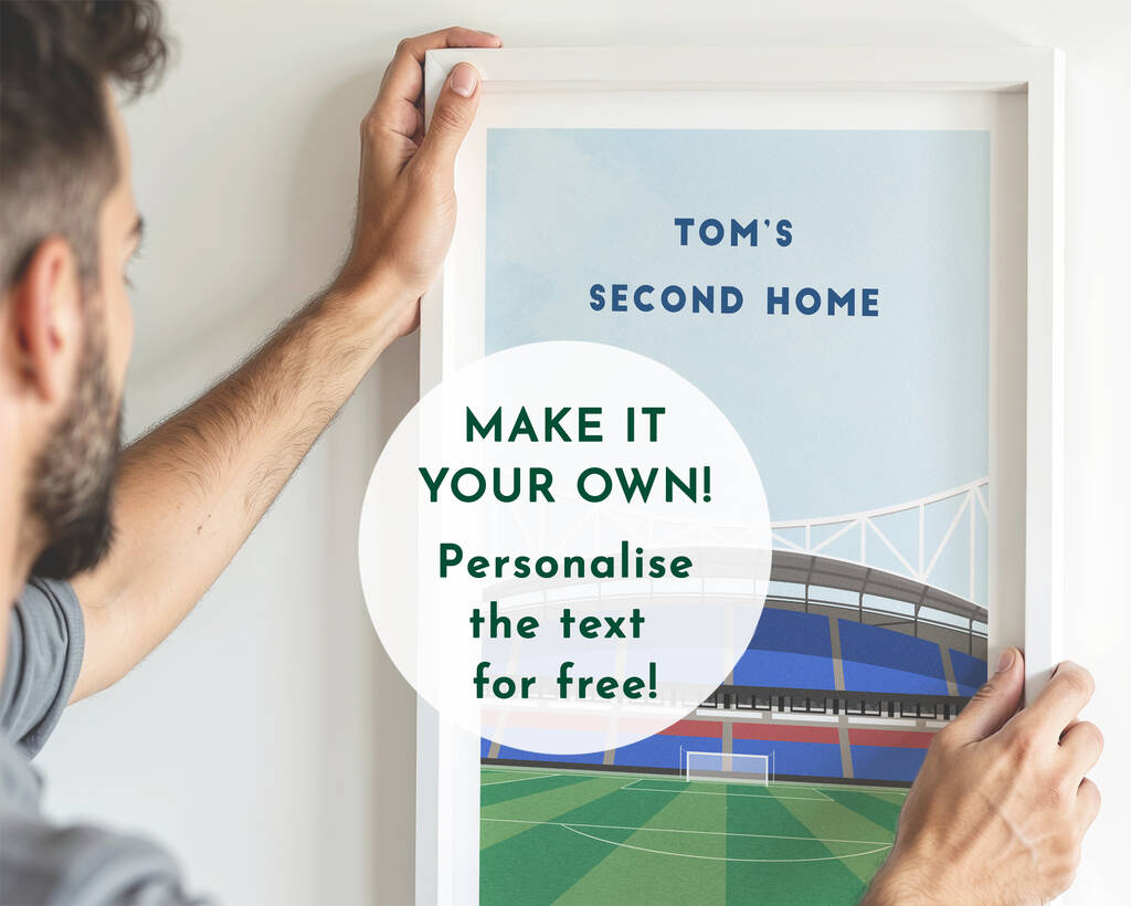 Make it your own and PERSONALISE the print with the text of your choice. Keep it simple by going for the name of the stadium, such as TWICKENHAM or give it a personal touch such as 'DAD'S SECOND HOME'.