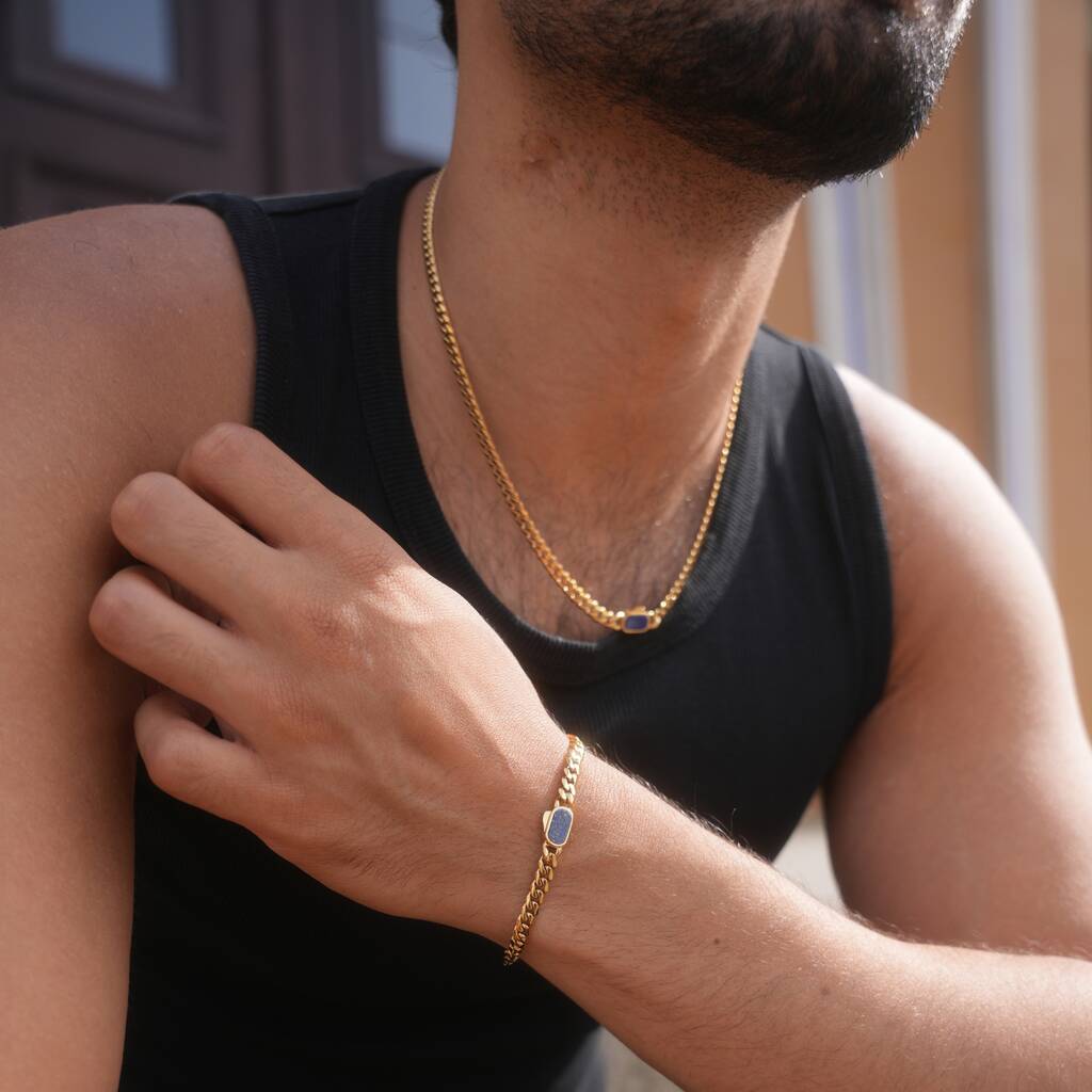 - Materials: Made from Stainless Steel / Lapis Gemstone / Gold PVD Plating