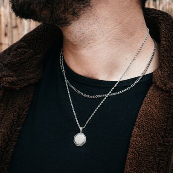 Silver Matte Octagon Stainless Steel Pendant Necklace