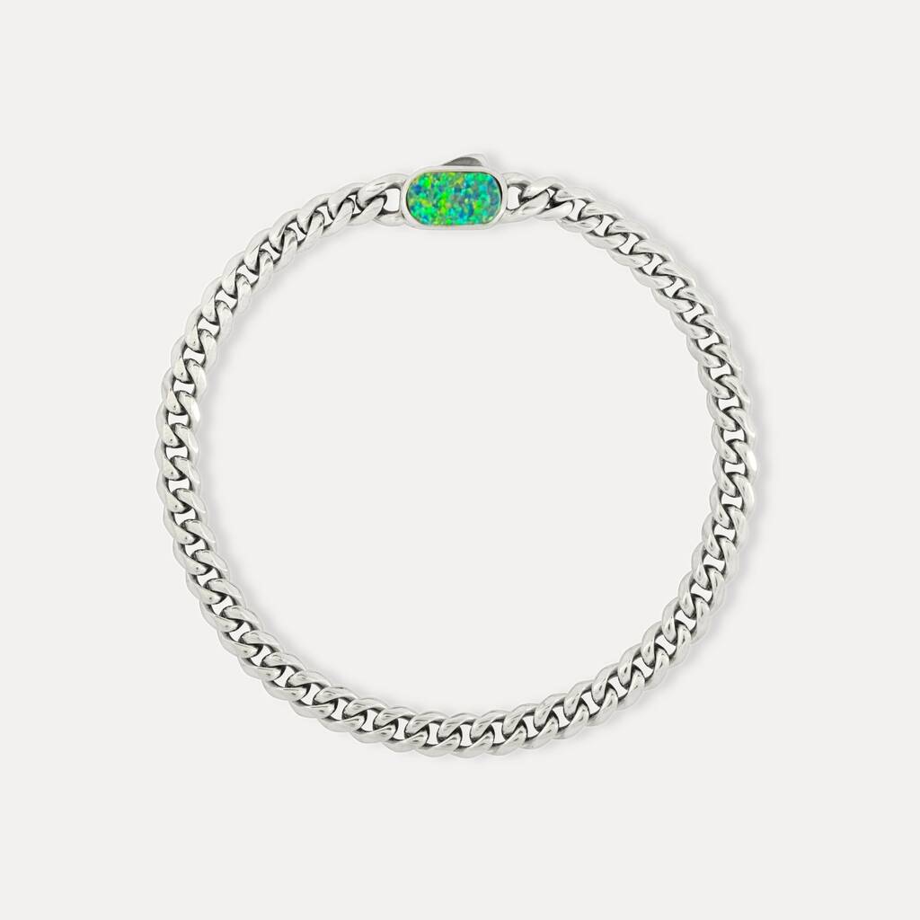 Our classic Silver 5mm Cuban bracelet with a bright Opal gemstone on the clasp.