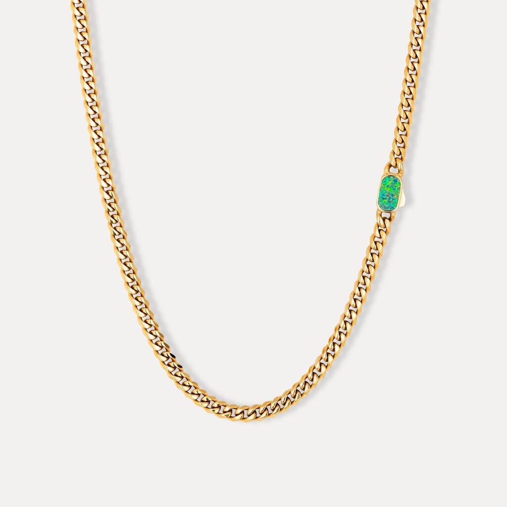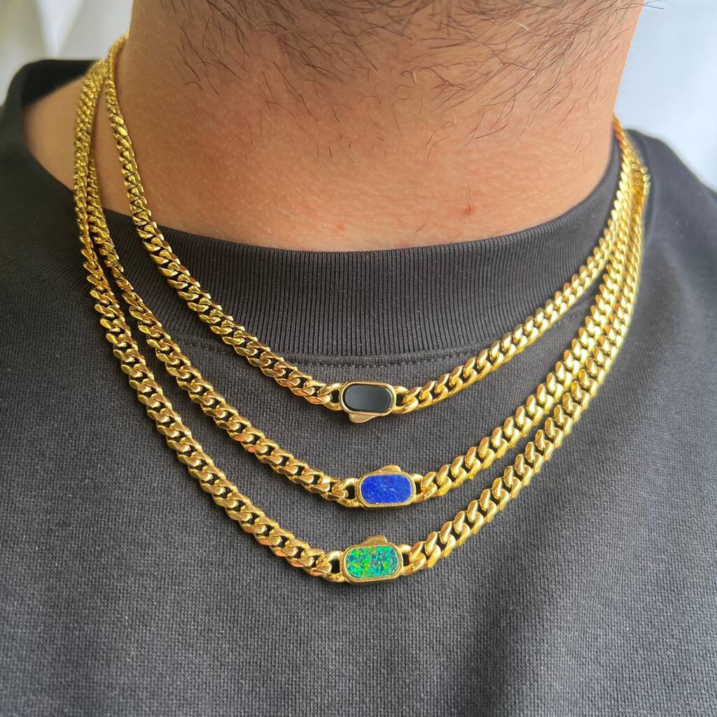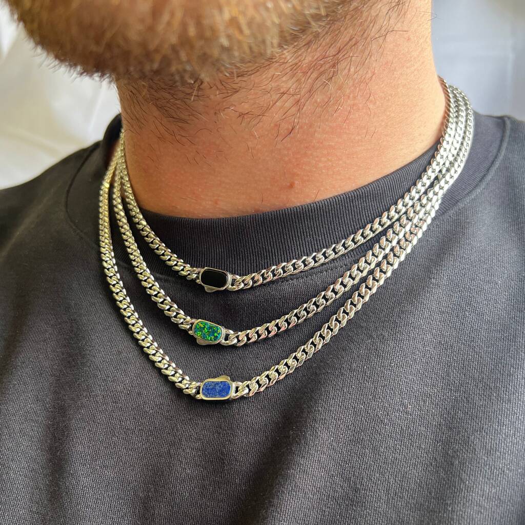 Silver Opal Gemstone Cuban Necklace Chain For Men