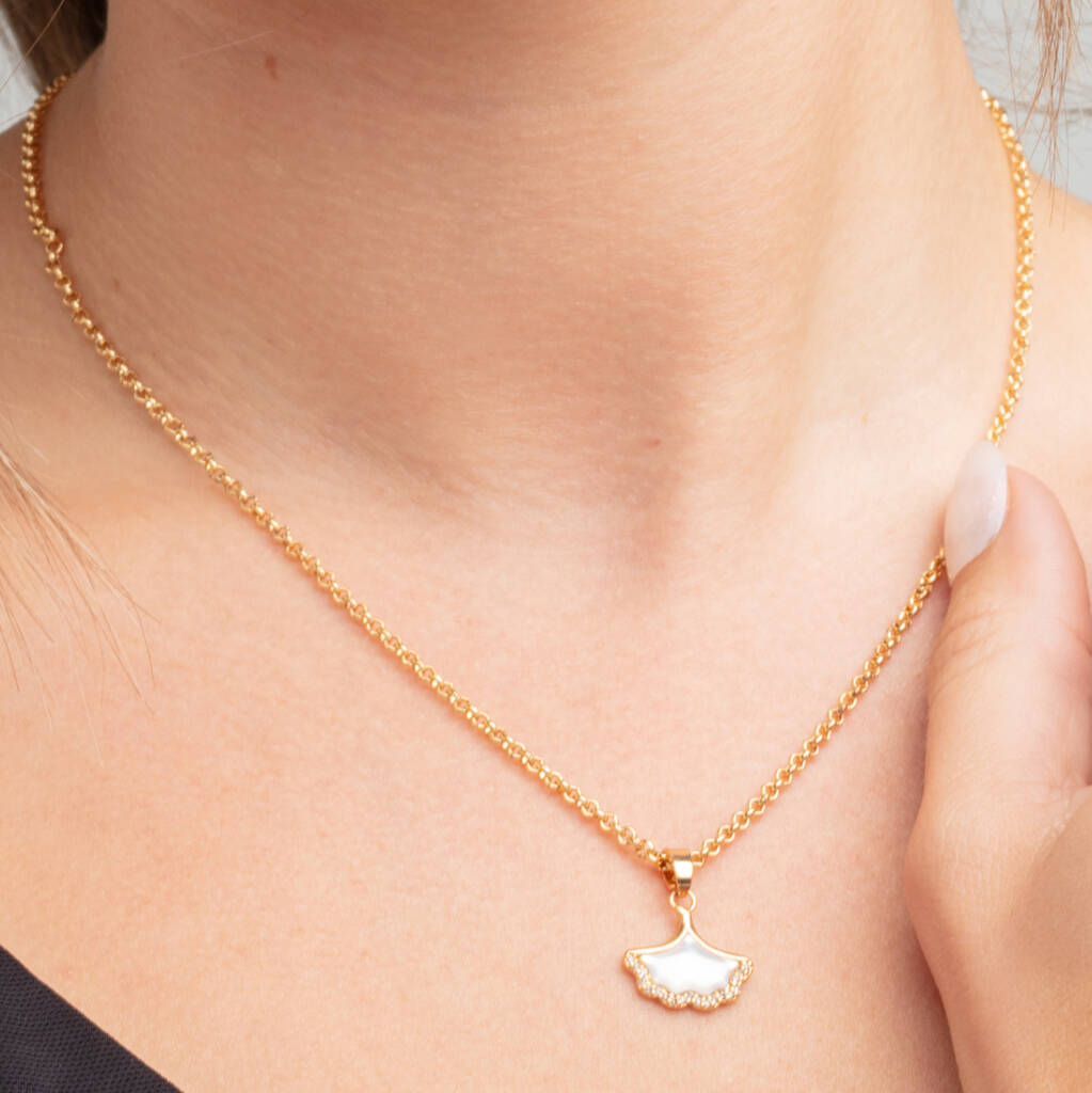 Gingko 18 K Gold Plated Shell Pendant Necklace