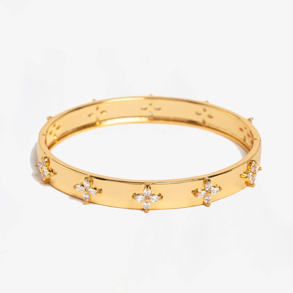 Kinmokusei 18 K Gold Plated Bead Floral Bangle