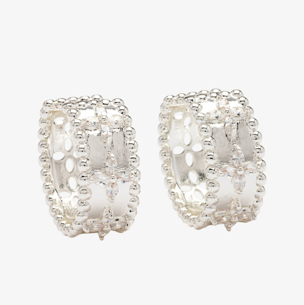 Kinmokusei Sterling Silver Plated Bead Floral Earrings