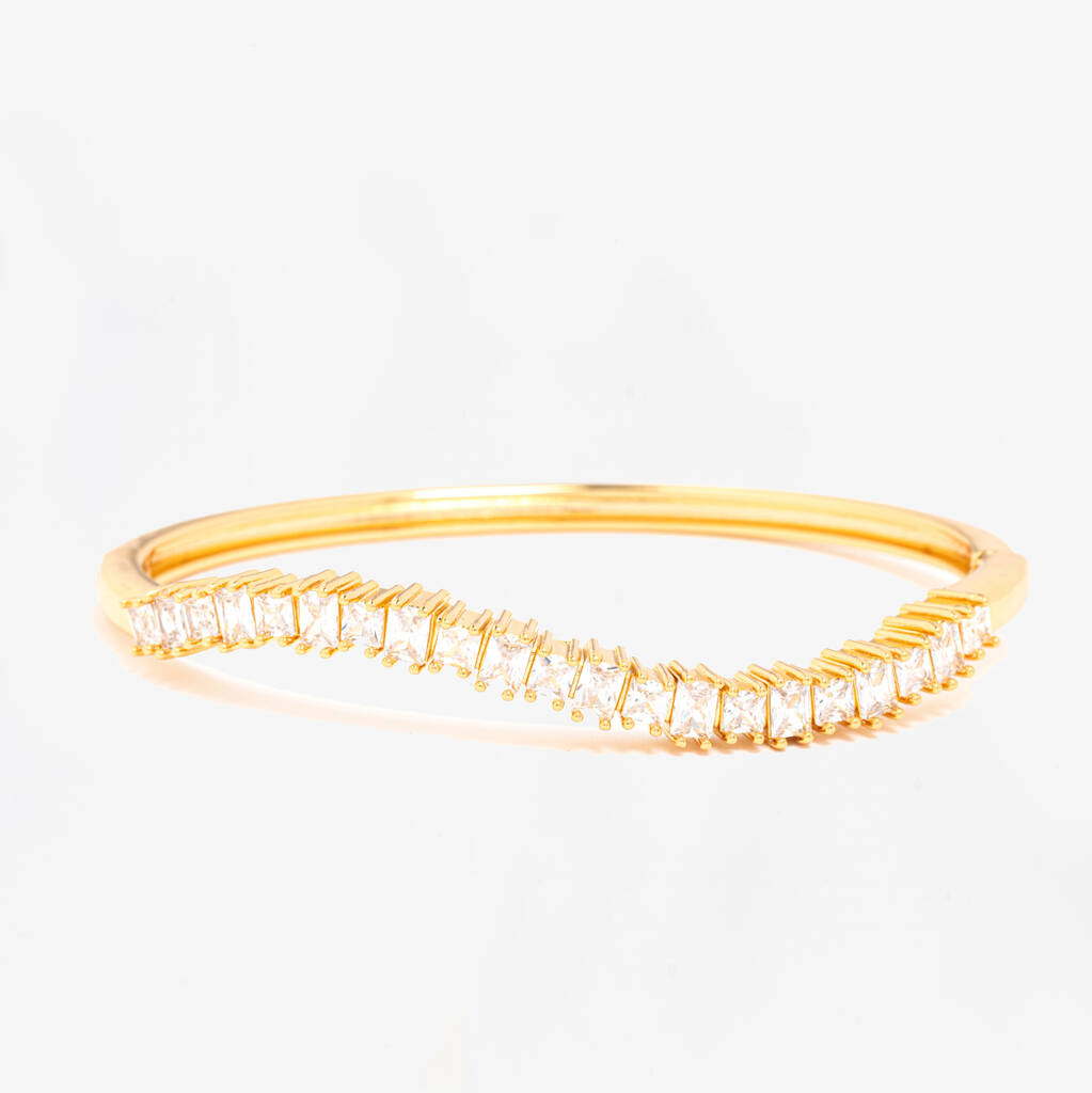 Nami 18 K Gold Plated Cz Stone Wave Bangle