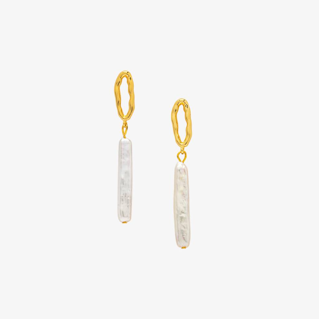 Shinju 18 K Gold Plating Real Pearl Drop Earrings