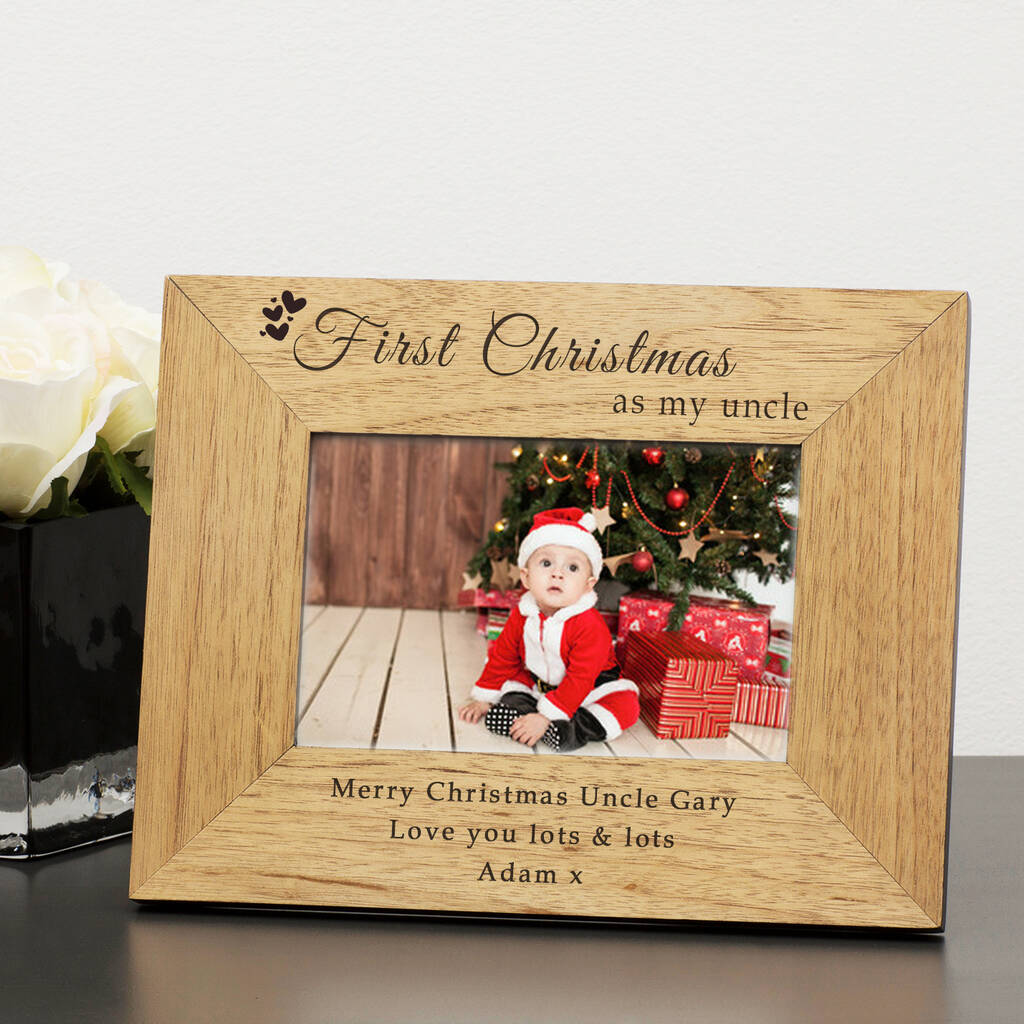 Make this Christmas truly unforgettable with a charming personalised photo frame designed especially for a first-time auntie. Crafted from smooth oak-veneer wood, the top of the frame is engraved with the phrase “First Christmas as my…” — simply add Auntie, Aunty, or any special variation your family uses to create a keepsake that feels uniquely theirs.
