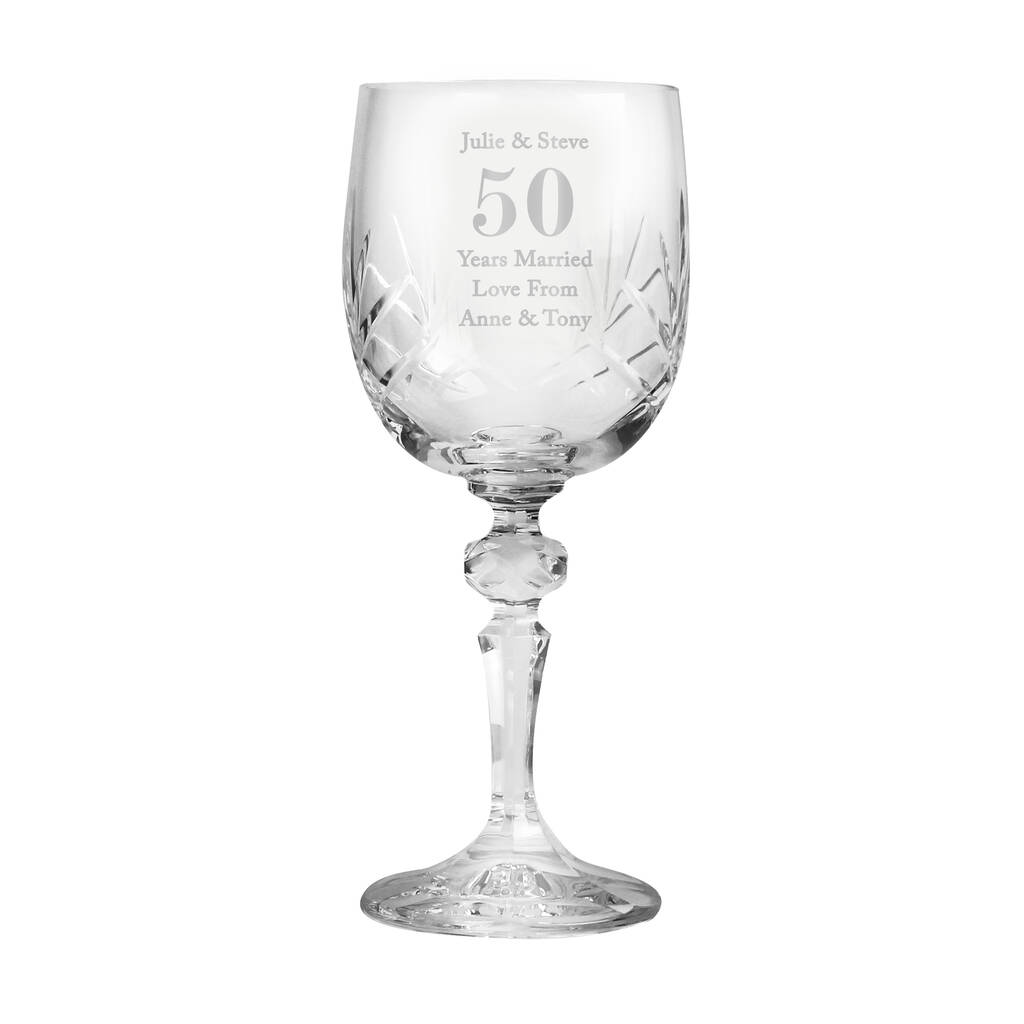 Expertly crafted from high-quality cut crystal, the glass features a refined stem and traditional detailing that catches the light beautifully. Make it truly personal with: