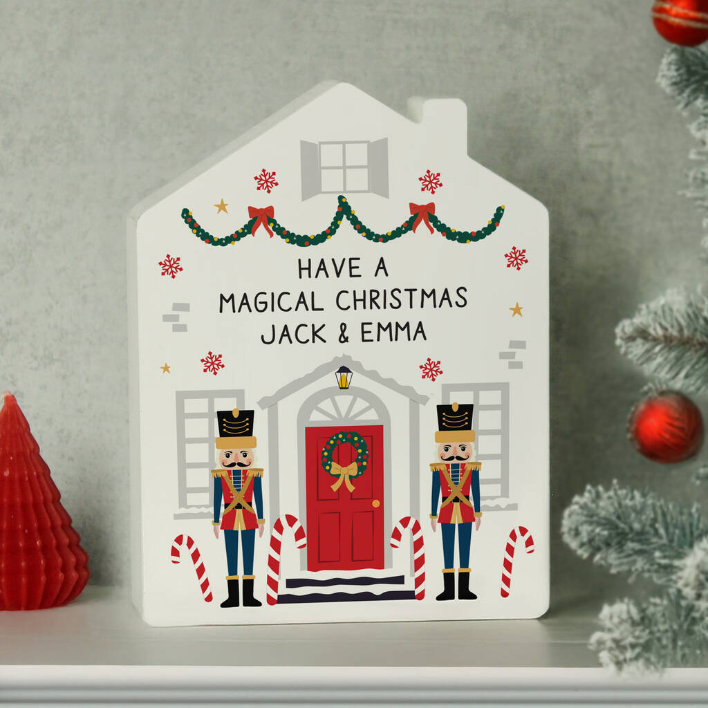 A charming personalised Nutcracker house ornament — a festive keepsake for families, adding classic Christmas magic to any mantelpiece, shelf or cosy corner.
