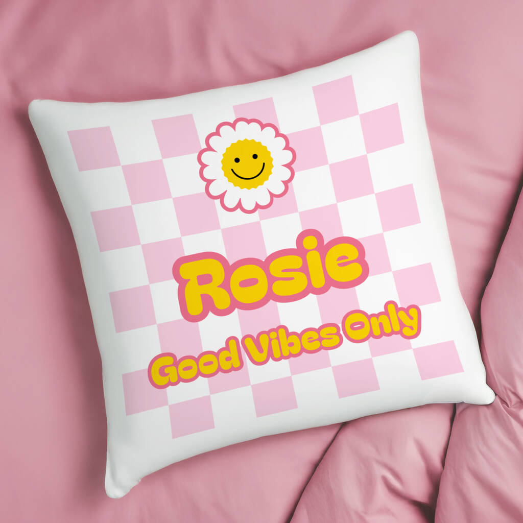 Personalised Pink Check Cushion For Girls’ Bedroom