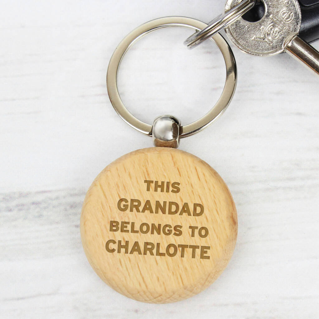 Personalised This Grandad Belongs To Wooden Keyring, 1 of 4