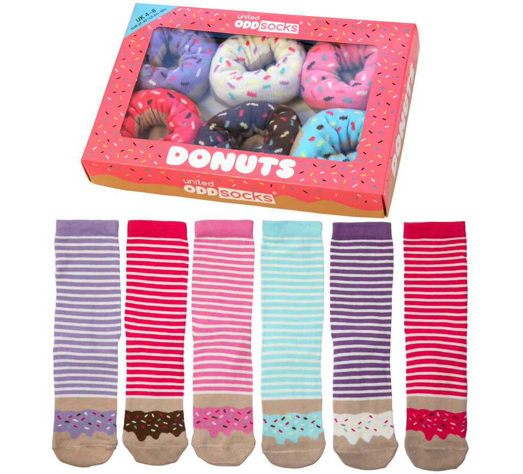 A Deliciously Fun Concept: Get ready for a "hole" lot of fun with this box of six sweet, individual socks!A Fun Start to Every Day: Say goodbye to the boring routine of pairing up plain socks! This set of six individual socks is designed to be mismatched, making your mornings easier and a lot more fun. It’s a brilliant way to add a sprinkle of joy and creativity to your day, letting you express your playful personality and unique sense of style with every colourful step you take. These lovely crew socks are designed to comfortably suit women's shoe sizes UK 4-8, EUR 37-42, and US 6.5-10.5.