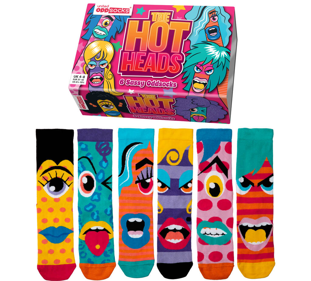 Six Wild Designs with Serious Sass: Meet The Hot Heads—six outrageously confident odd socks featuring wild expressions, bold makeup, and eye-popping colours.Fabulous Gift with Full-On Flair: Packaged in a bright pink box that’s as fierce as the socks inside, The Hot Heads are a top gift for birthdays, Valentine’s, or any surprise worth celebrating. Ideal for friends, sisters, or anyone who rocks big energy, this set delivers colour, attitude, and daily style joy. A cheeky treat that’s guaranteed to raise eyebrows and bring laughs. Sized for Style and Comfort: Designed to fit UK 4–8, EUR 37–42, and US 6.5–10.5, these socks provide a flexible, secure fit for most women’s feet.