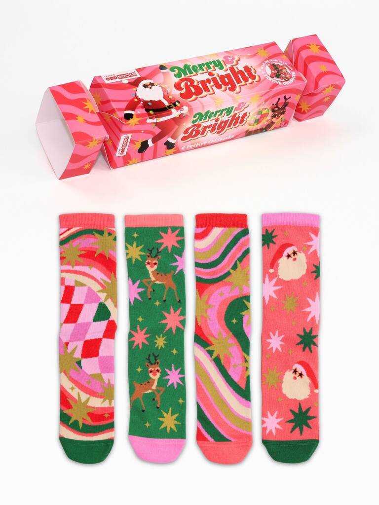 Presented in a Christmas cracker-style gift box, this novelty sock set makes a fun and festive stocking filler, Secret Santa surprise, or thoughtful present.Mix and Match Style – The Merry & Bright set includes 4 individual odd socks that can be mixed and mismatched into multiple fun combinations. Featuring bold festive patterns, vibrant colours, and quirky Christmas characters, these socks let you express holiday spirit in a unique and playful way all season long. Perfectly sized for women UK 4–8, EUR 37–42, and US 6.5–10.5, these socks provide a comfortable fit for a wide range of foot sizes.