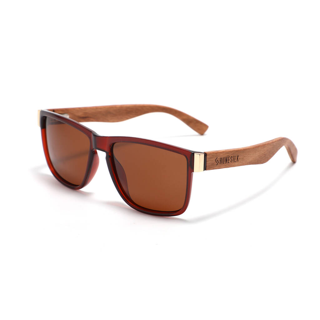 RUNESILK’s Après-ski Brown Polarised Sunglasses celebrate sustainable craftsmanship and dependable design. The frame combines lightweight modern materials with natural zebra wood for the arms, creating a stylish contrast and ensuring comfort. Each zebra wood arm showcases its own naturally striped grain, making every pair unique. The arms are equipped with double spring hinges, adding extra flexibility and durability for a secure and comfortable fit across various face shapes.