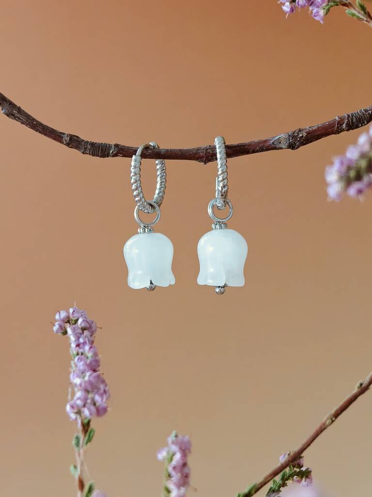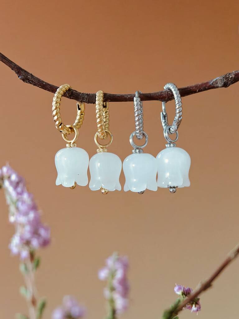 Elegant White Jade Lily Hoop Earrings