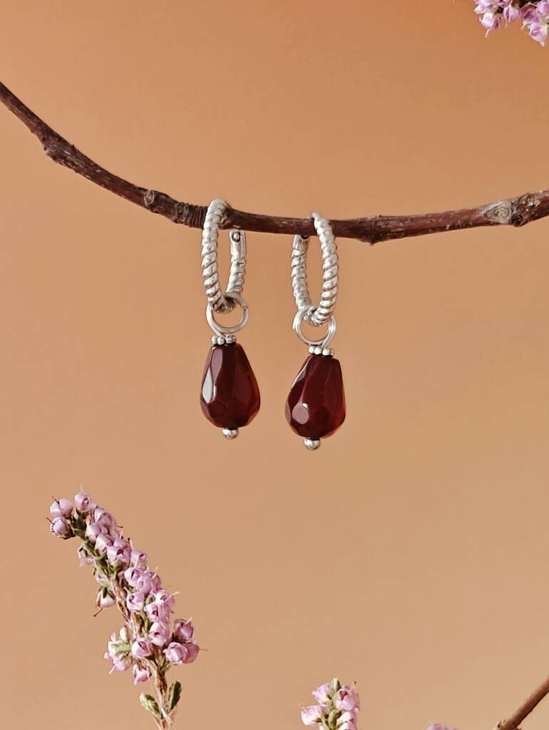 Red Agate Pomegranate Seed Twisted Huggie Hoop Earrings