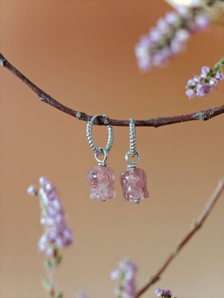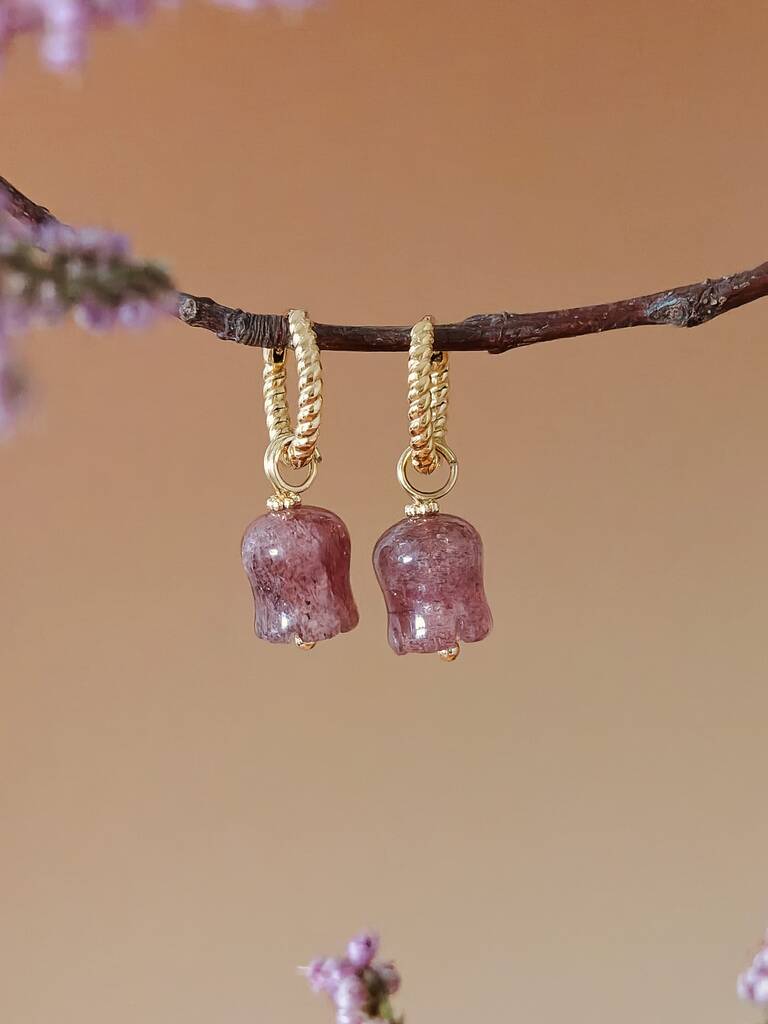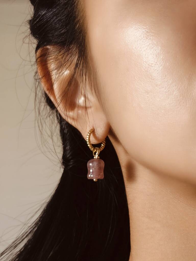 Strawberry Quartz Lily Twisted Huggie Hoop Earrings