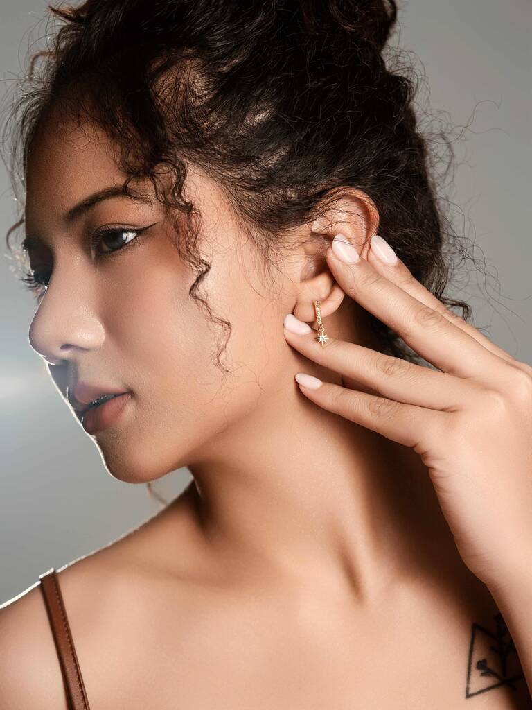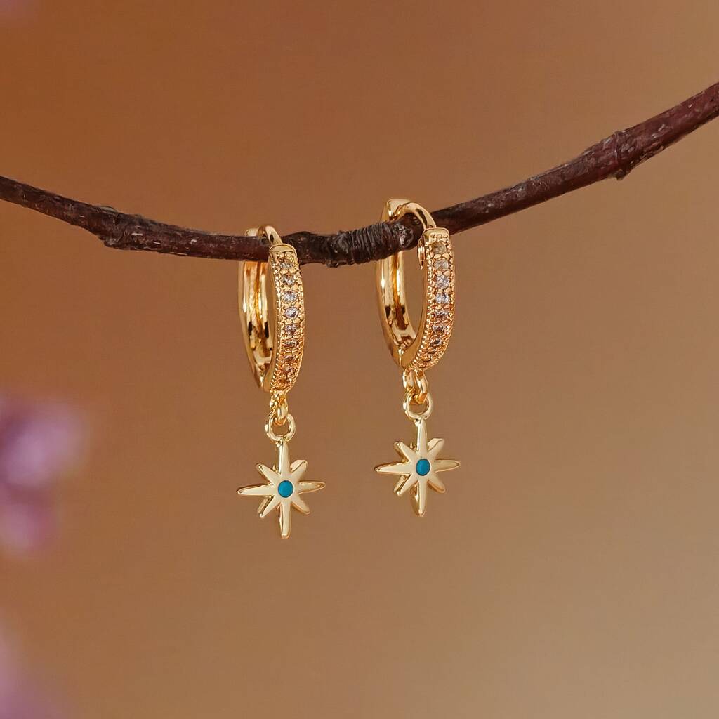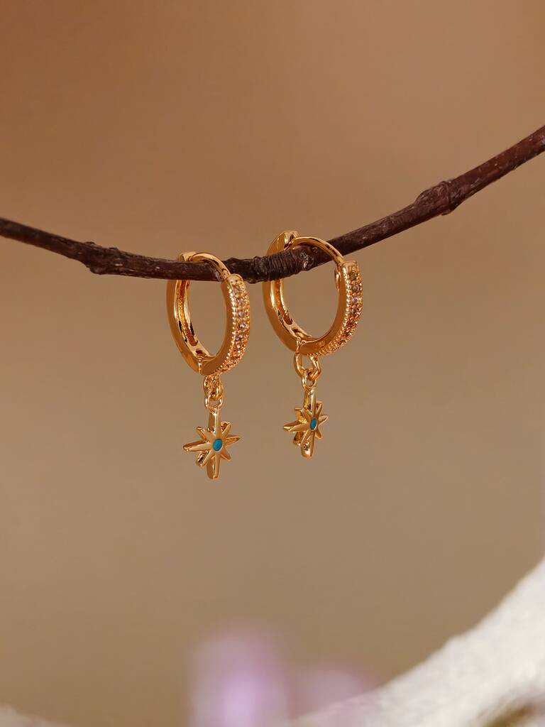 Tiny North Starburst Skye Blue Huggie Hoop Earrings