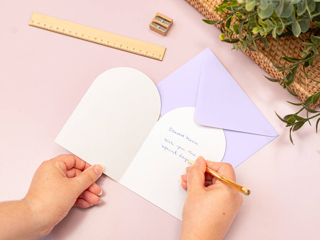 -Includes a light purple envelope