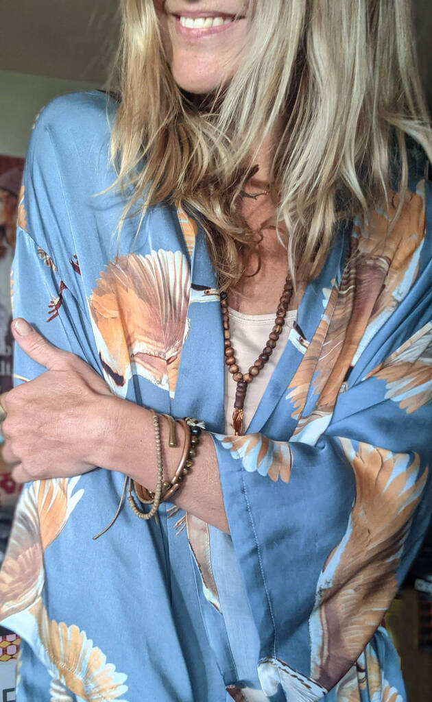 A stunning bamboo silk kimono, elegant & luxurious, perfect robe for beach holiday travel or as a thoughtful gift. Handcrafted with love