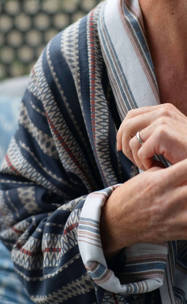 Everywhere Approved: Whether you're lounging at home wrapped in deep, luxurious colour, walking the dog in standout style, or turning heads at a festival, this Ikat robe has you covered.