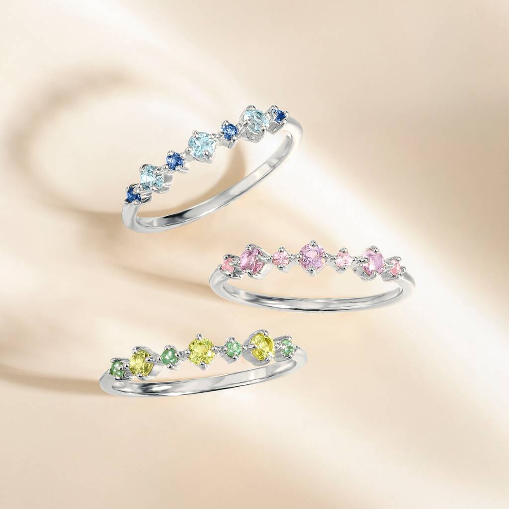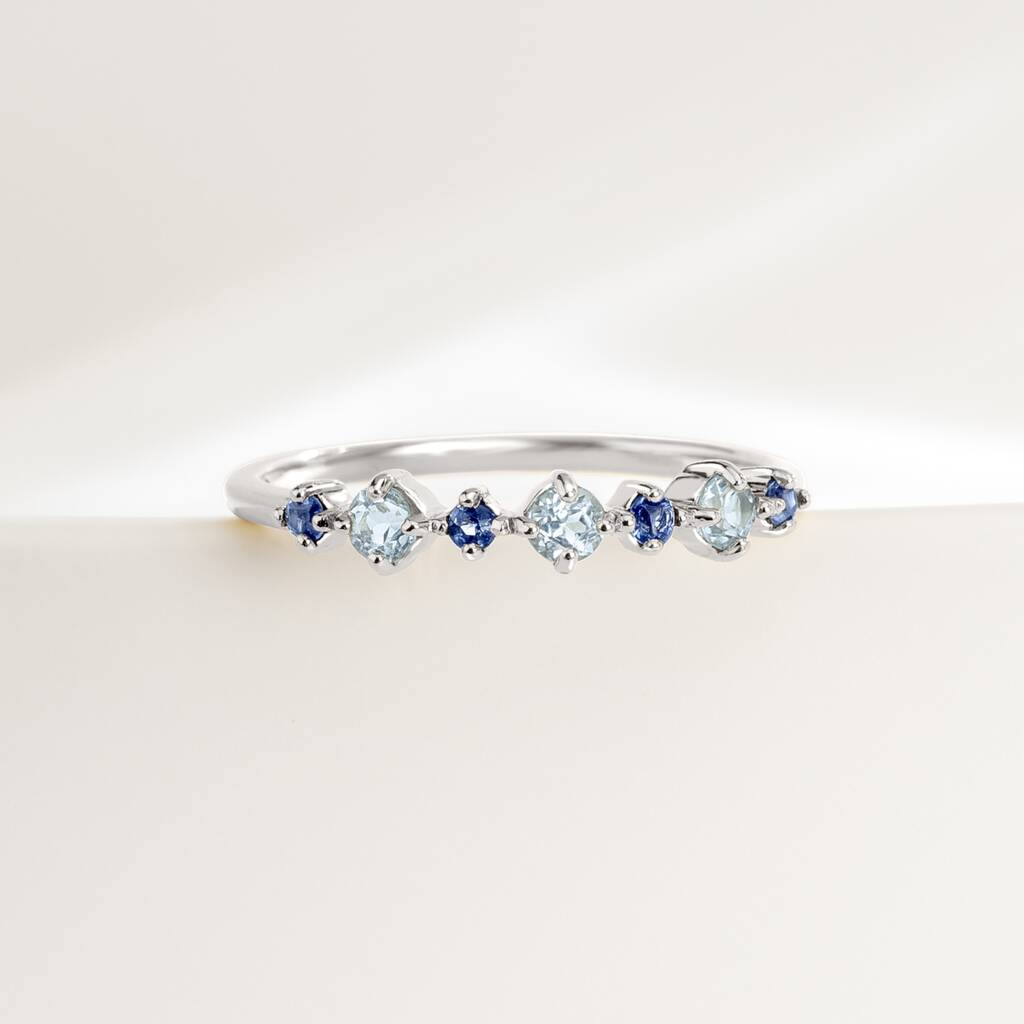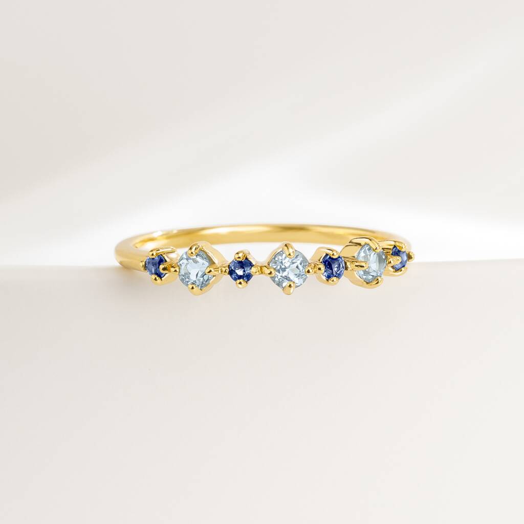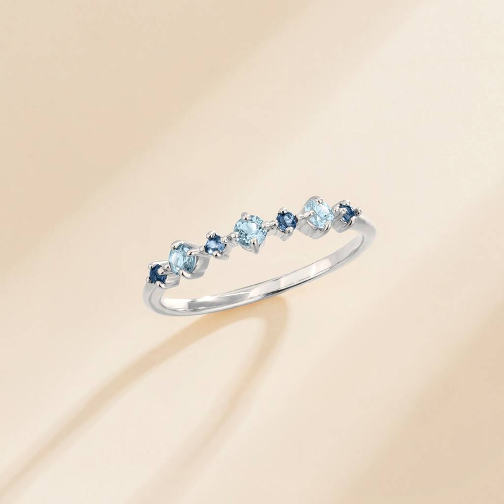 Featuring beautiful natural blue sapphires and Swiss blue topaz, this dainty, stackable ring is perfect for your everyday.
