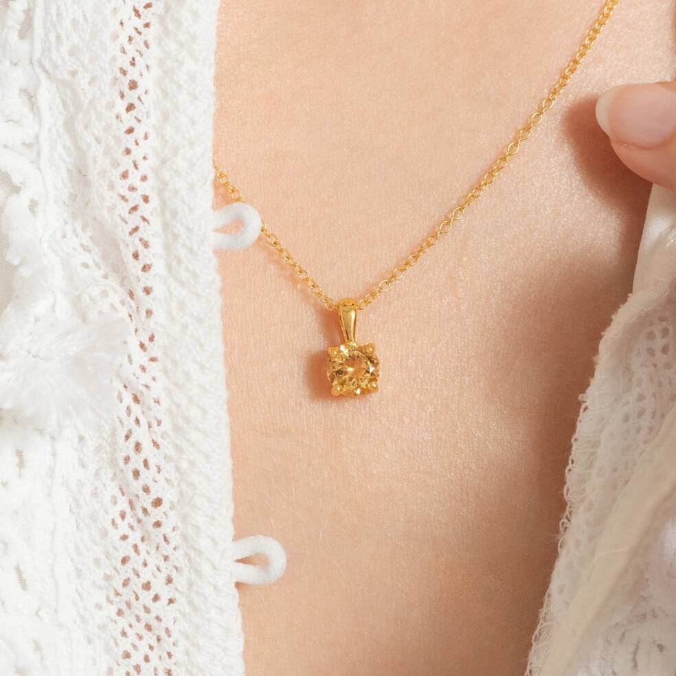 Citrine Solitaire Pendant Necklace In Sterling Silver And Gold