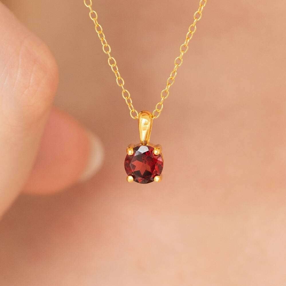 Garnet Solitaire Pendant Necklace In Sterling Silver And Gold