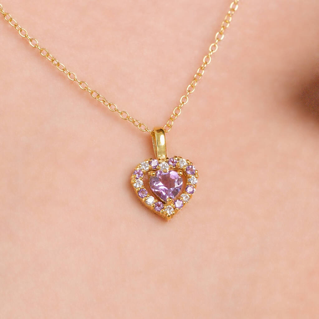 Purple Heart Lavender Amethyst Pendant Necklace In Silver And Gold