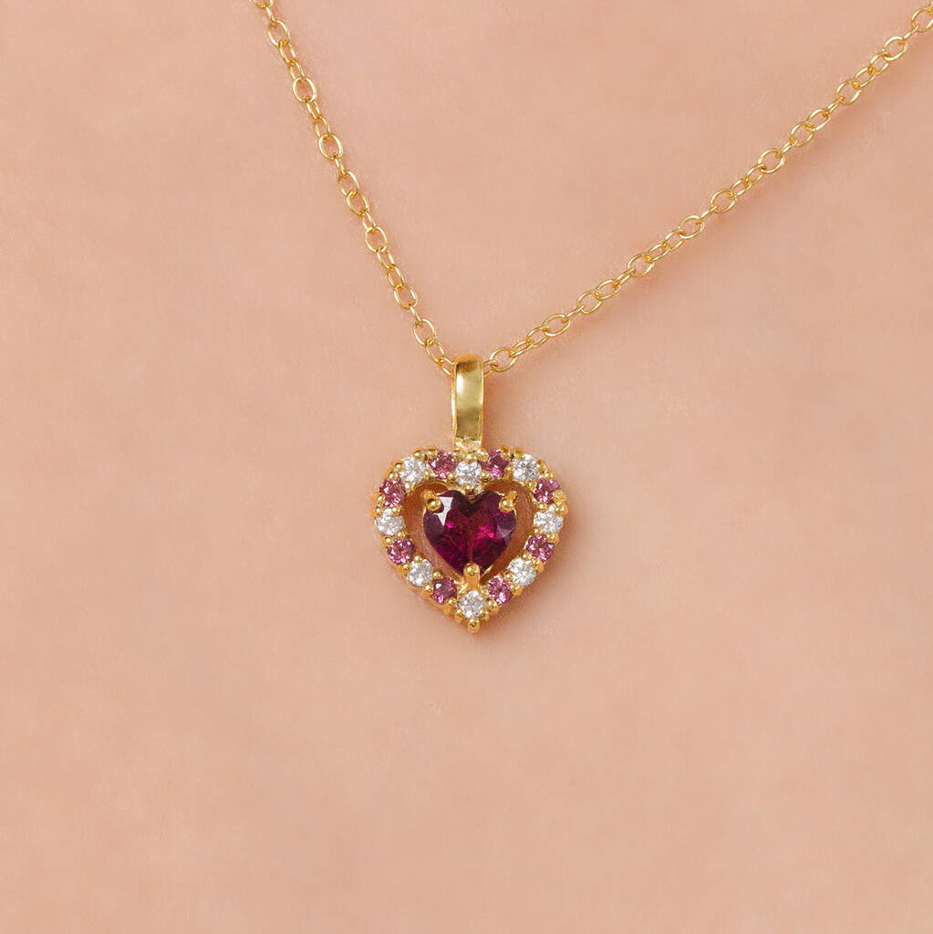 Red Heart Rhodolite Garnet Pendant Necklace In Silver And Gold