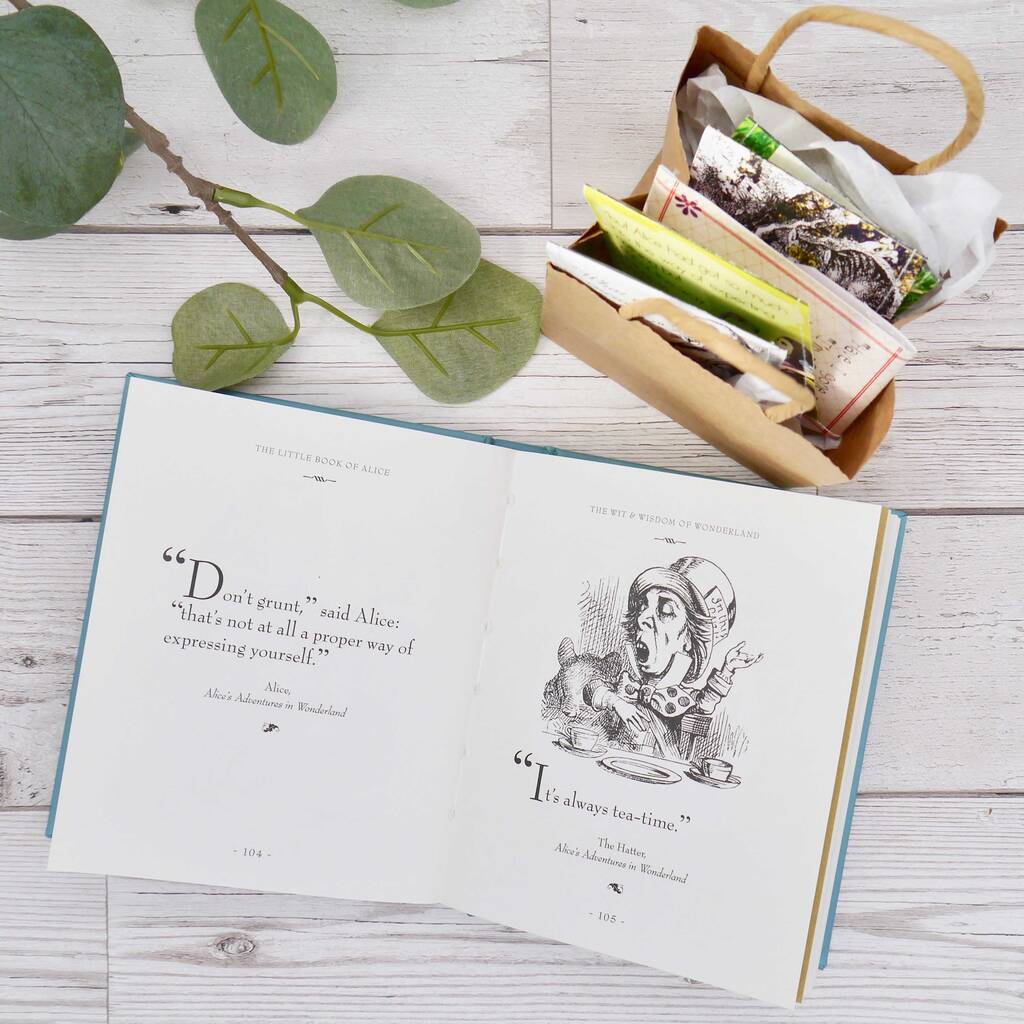 This magical literary gift is perfect for any Alice in Wonderland fan – whether they’re a bookworm, a tea enthusiast, or a fan of timeless classics. Each handcrafted sewn paper envelope and page of the gift book features an enchanting design or quote inspired by Lewis Carroll’s original hand-drawn illustrations from the original manuscript for ‘Alice’s Adventures Under Ground’.