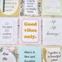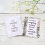 Each set includes 8 or 16 delicious teabags, individually wrapped sewn paper envelopes, featuring sweet, uplifting quotes and messages especially designed as a warm reminder that she’s loved and supported.