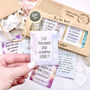 Each envelope includes a flavour card or tag, explaining which tea flavour it contains, so your recipient knows exactly what delicious tea awaits.