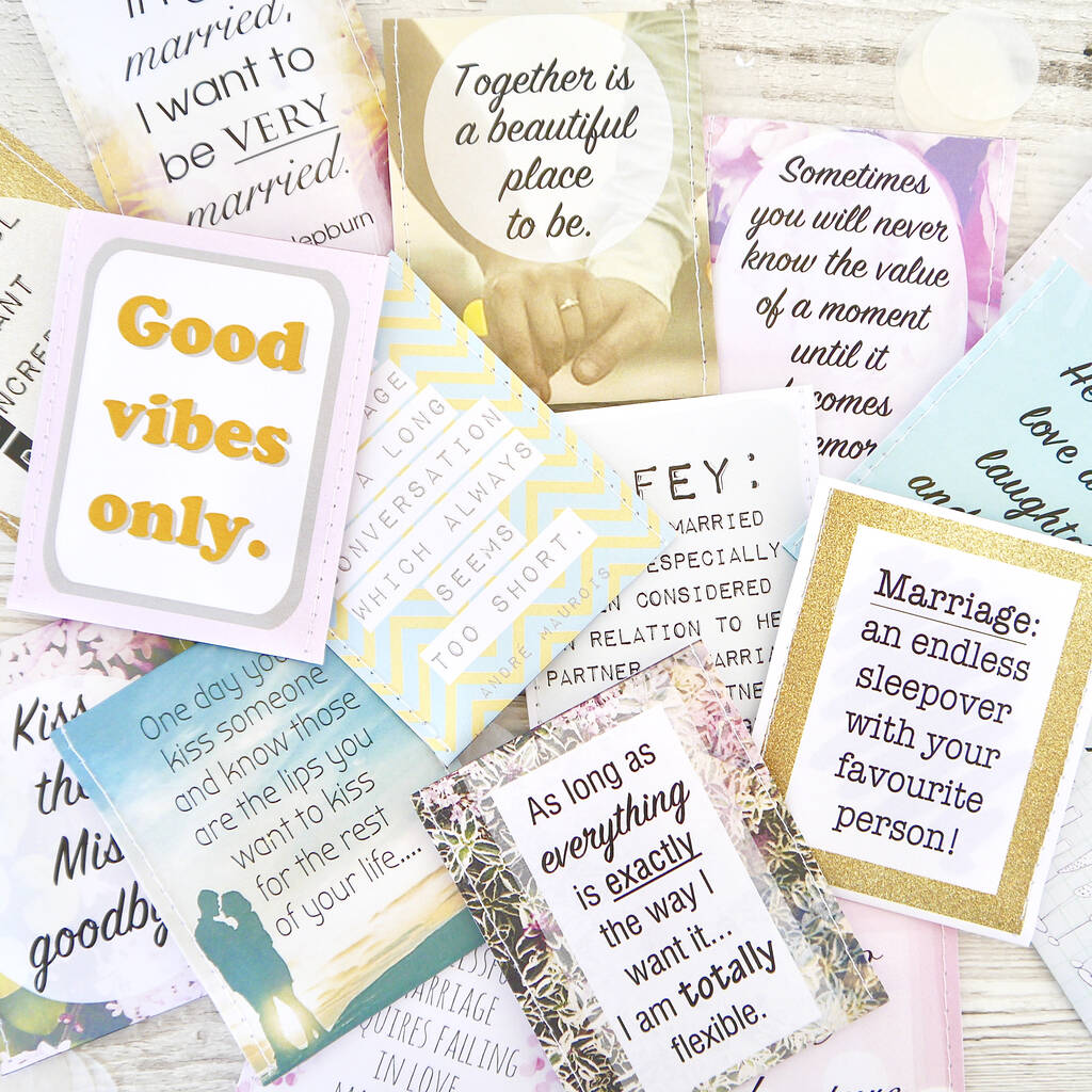 Guests at a bridal shower or kitchen tea can write messages on the back of some envelopes, creating a personalised gift filled with encouragement, love and laughter.