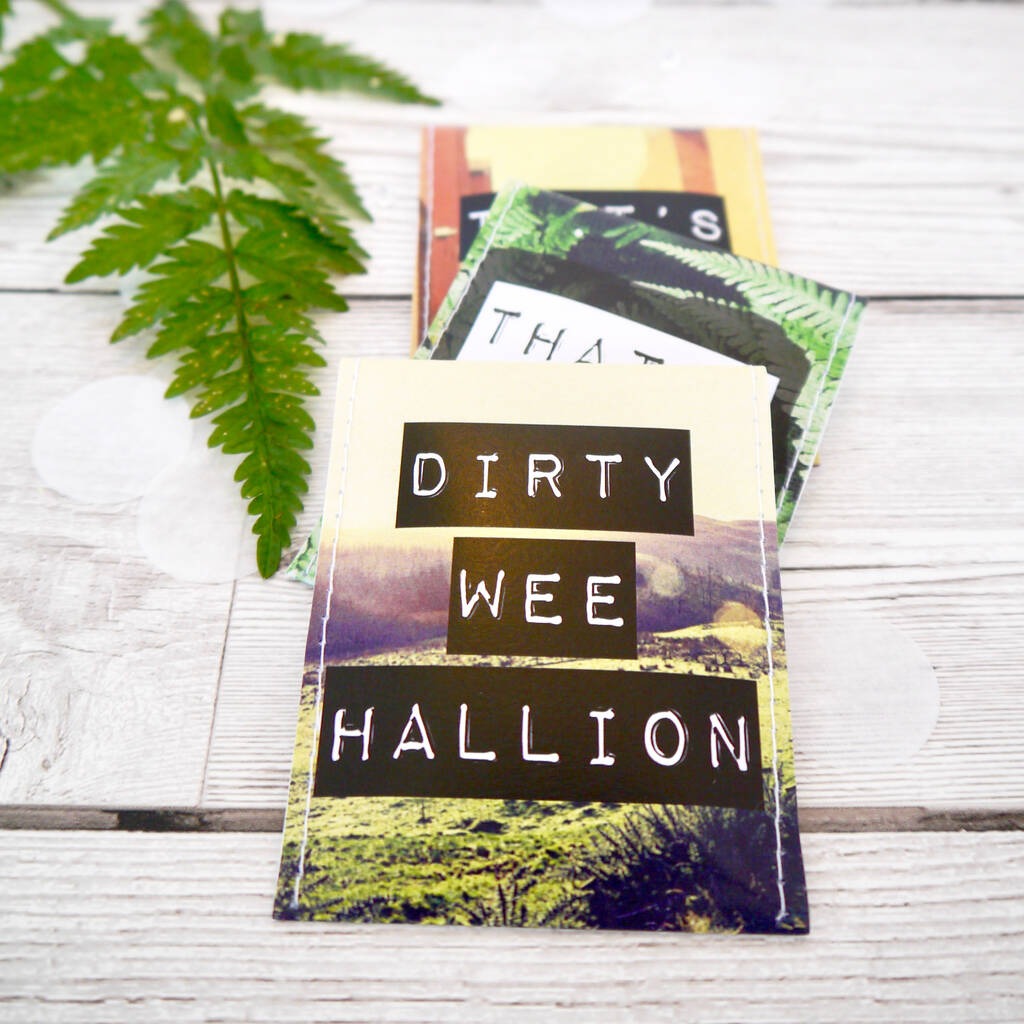 A set of 8 or 16 teabags individually wrapped in handcrafted beautifully sewn paper envelopes, featuring funny Northern Irish colloqialisms complete with their translations.