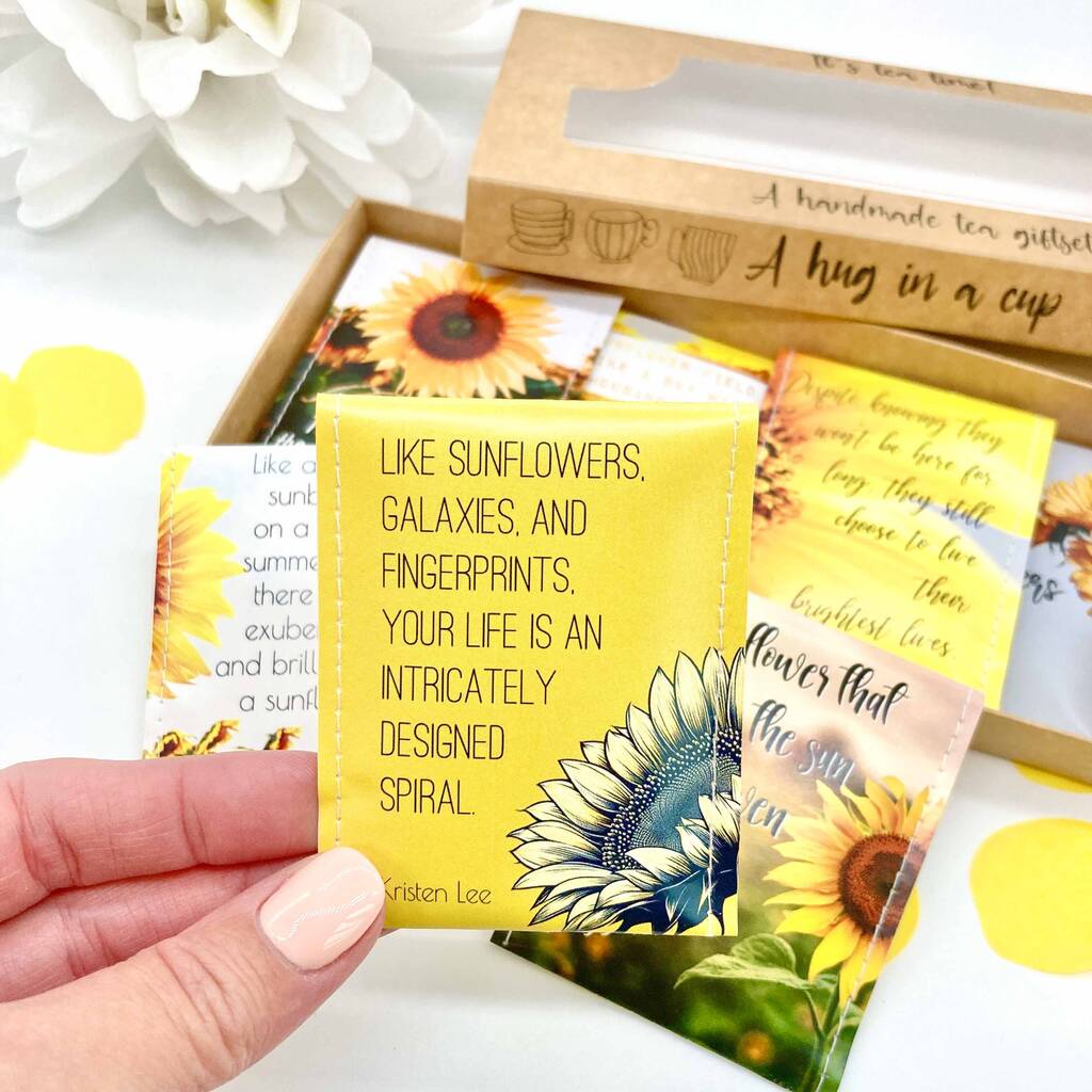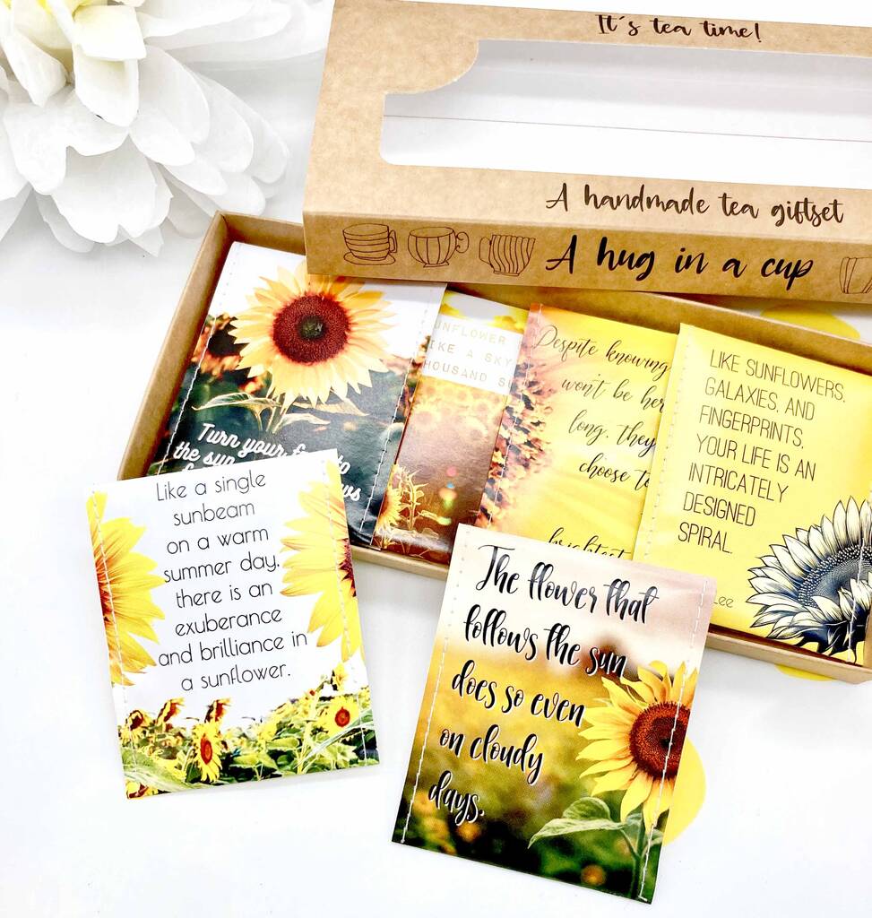 With their cheerful sunflower design and uplifting messages, this handmade tea gift set is a beautiful way to offer warmth, comfort and encouragement to somene special.