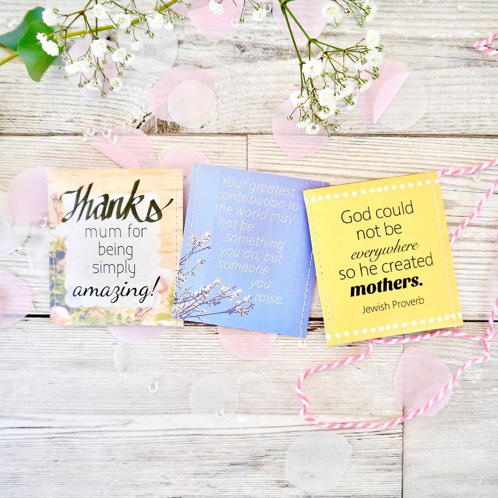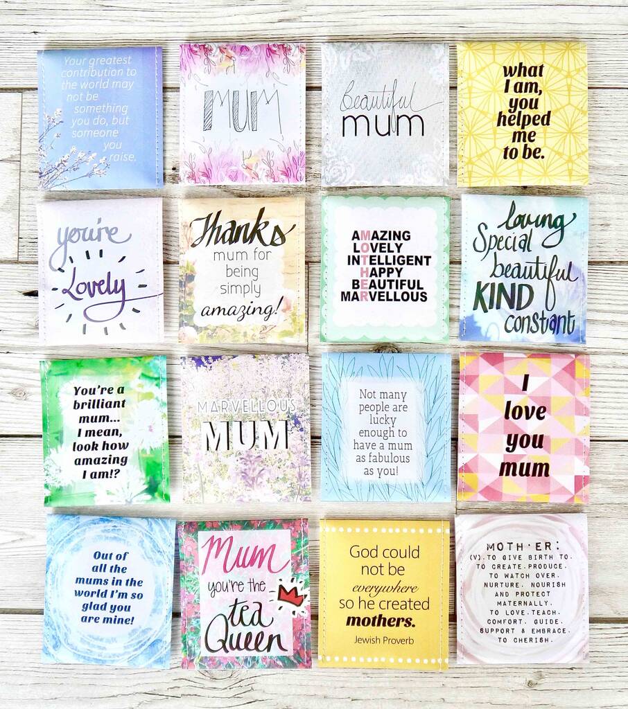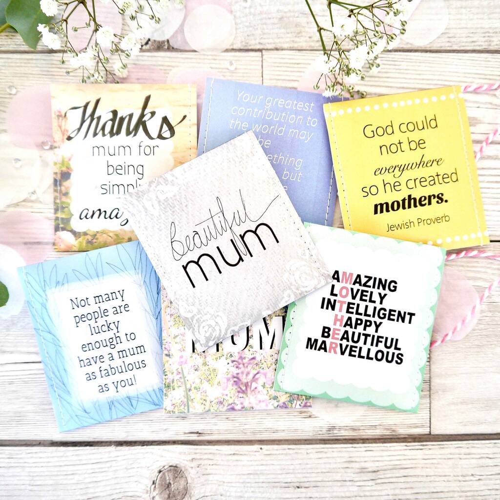 These are the perfect gift for a mum who loves tea! The designs include cute, encouraging quotes for mum! These also make a perfect Mother's Day gift.