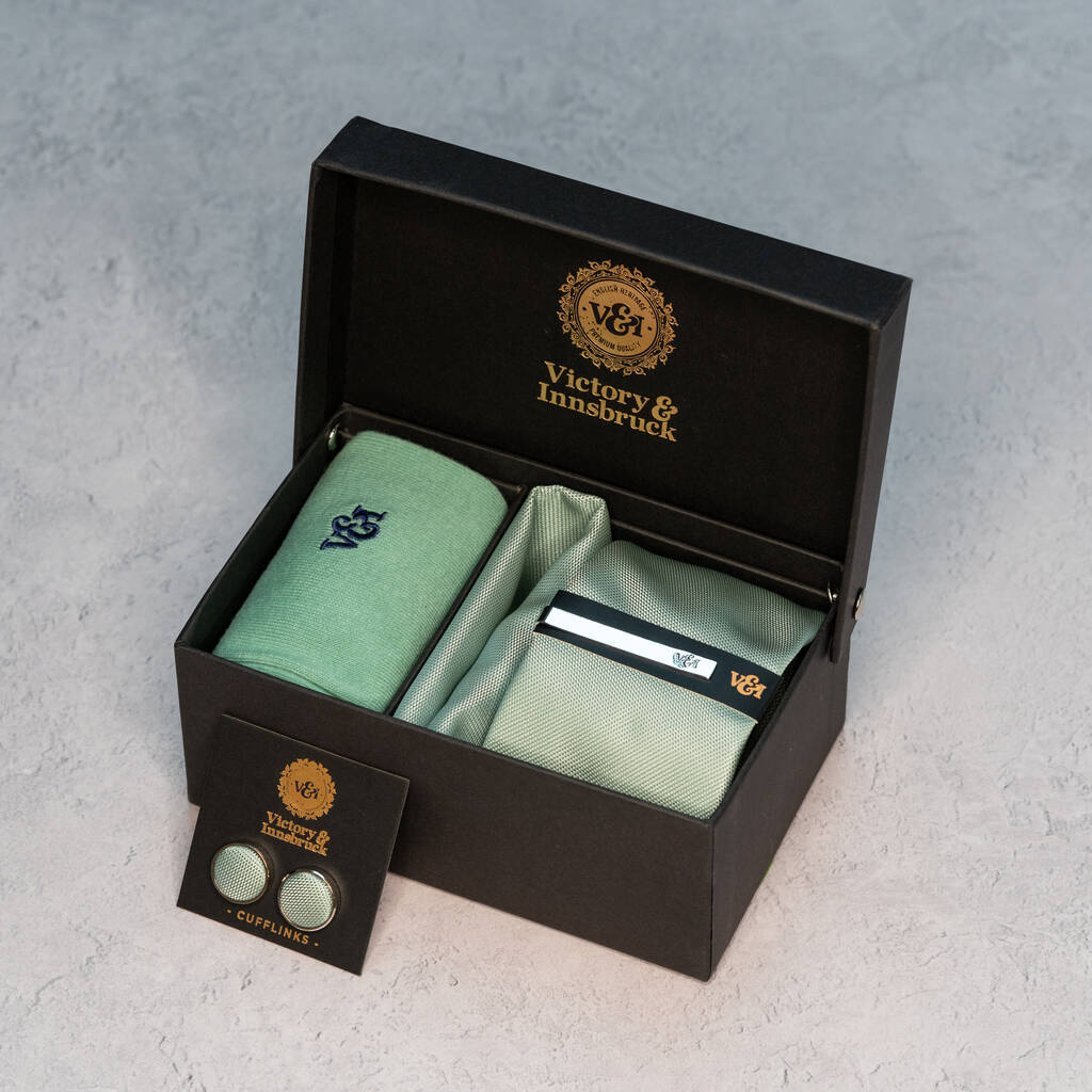 Sage Green Textured Tie Set And Socks Wedding Groomsmen Gift