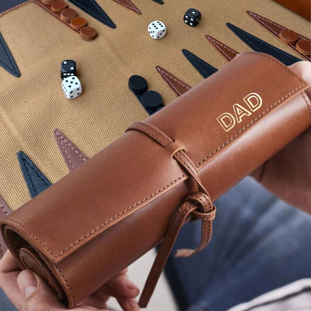 This handmade leather backgammon set is the perfect way to pass the time when you're on your travels.