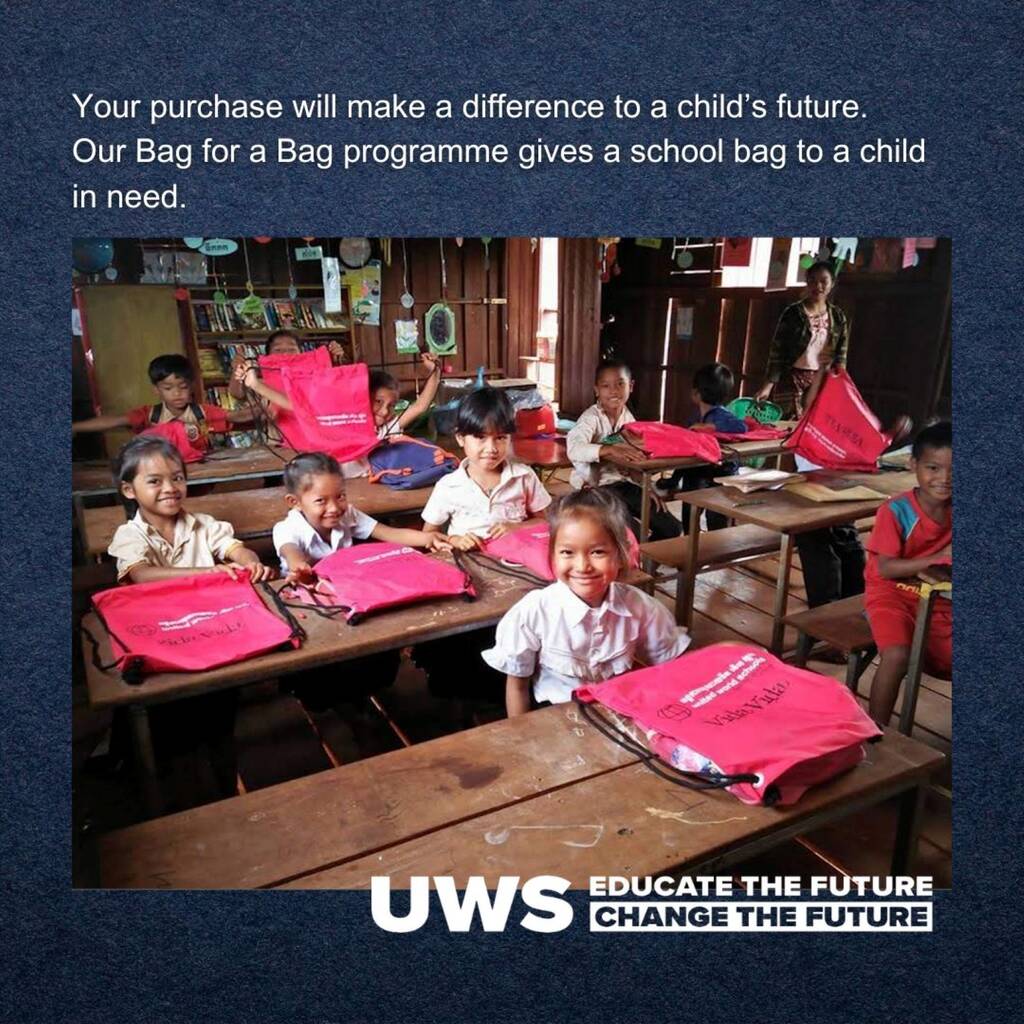 We've teamed up with UNITED WORLD SCHOOLS - a fantastic charity that sets up schools in unreachable, poverty stricken and/or conflict areas of Cambodia, Nepal and Myanmar (so far!), where the children wouldn't otherwise have access to education. Our Bag for a Bag Programme guarantees a school bag for one of these children with EVERY sale we make over £25. The school bag keeps their books and school equipment safe and really helps them feel a part of their school as they don't have a formal school uniform.