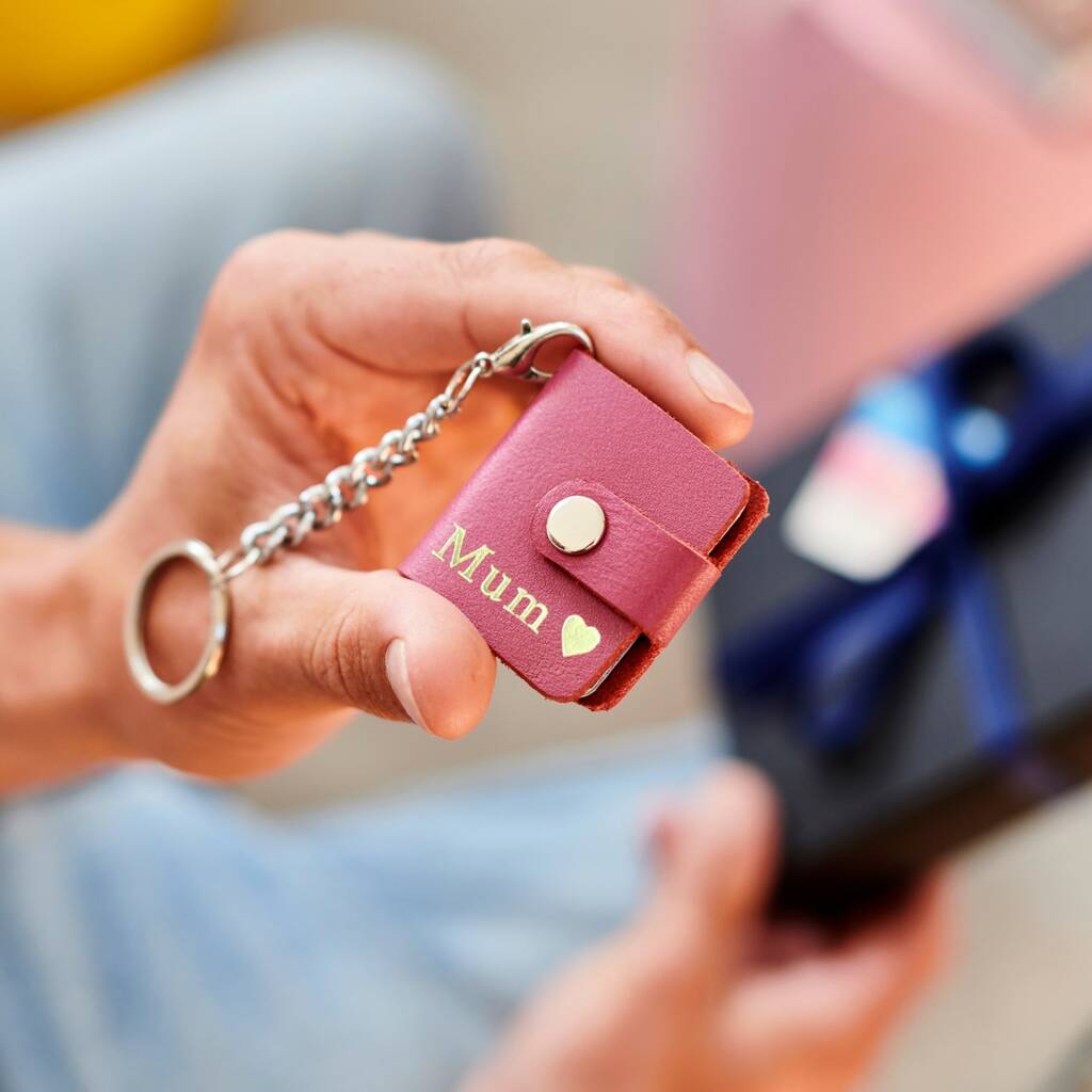 Personalised Leather Eight Photo Mini Book Keyring For Grandad With Hot Stamped Initials, Name Or Date
