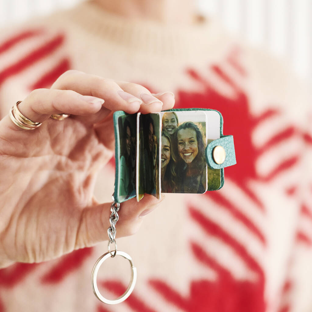 Personalised Leather Eight Photo Mini Book Keyring For Mum With Hot Stamped Initials, Name Or Date