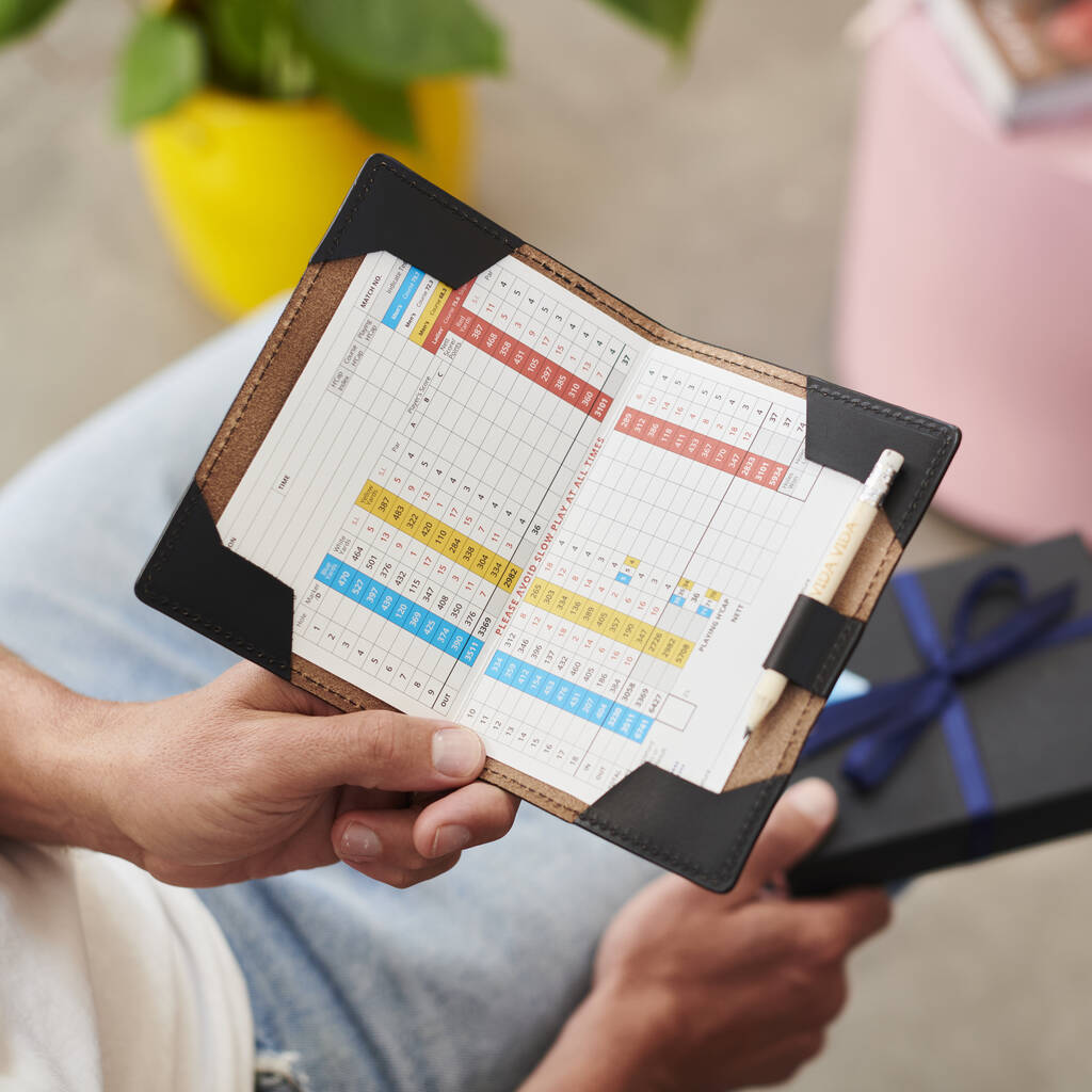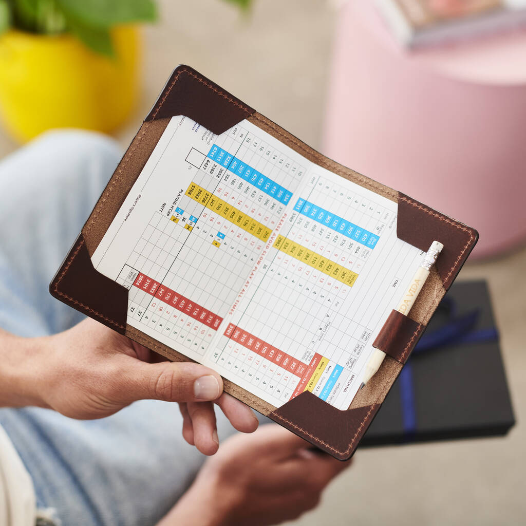 This handmade leather golf score holder is the perfect personalised Christmas present for any budding golfer.