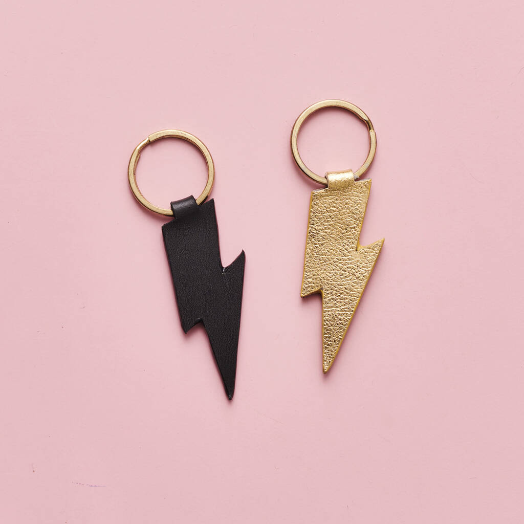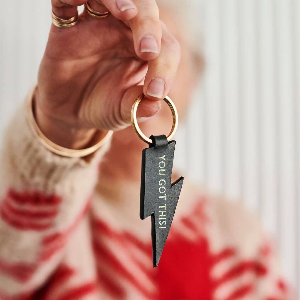 Personalised Lightning Strike Leather Keyring With Hot Stamped Message