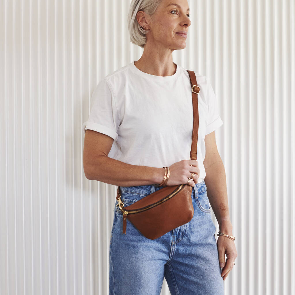 The beautiful leather sling bag is handmade from buttery soft leather using a functional, comfortablt to wear design.