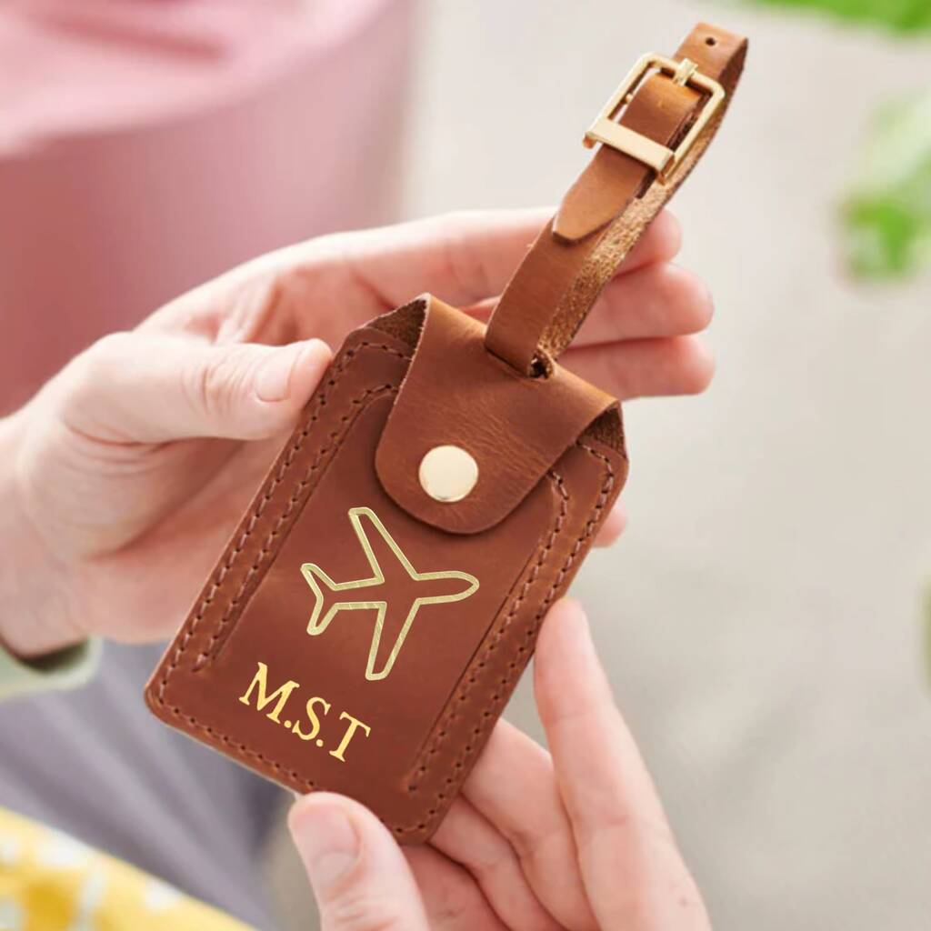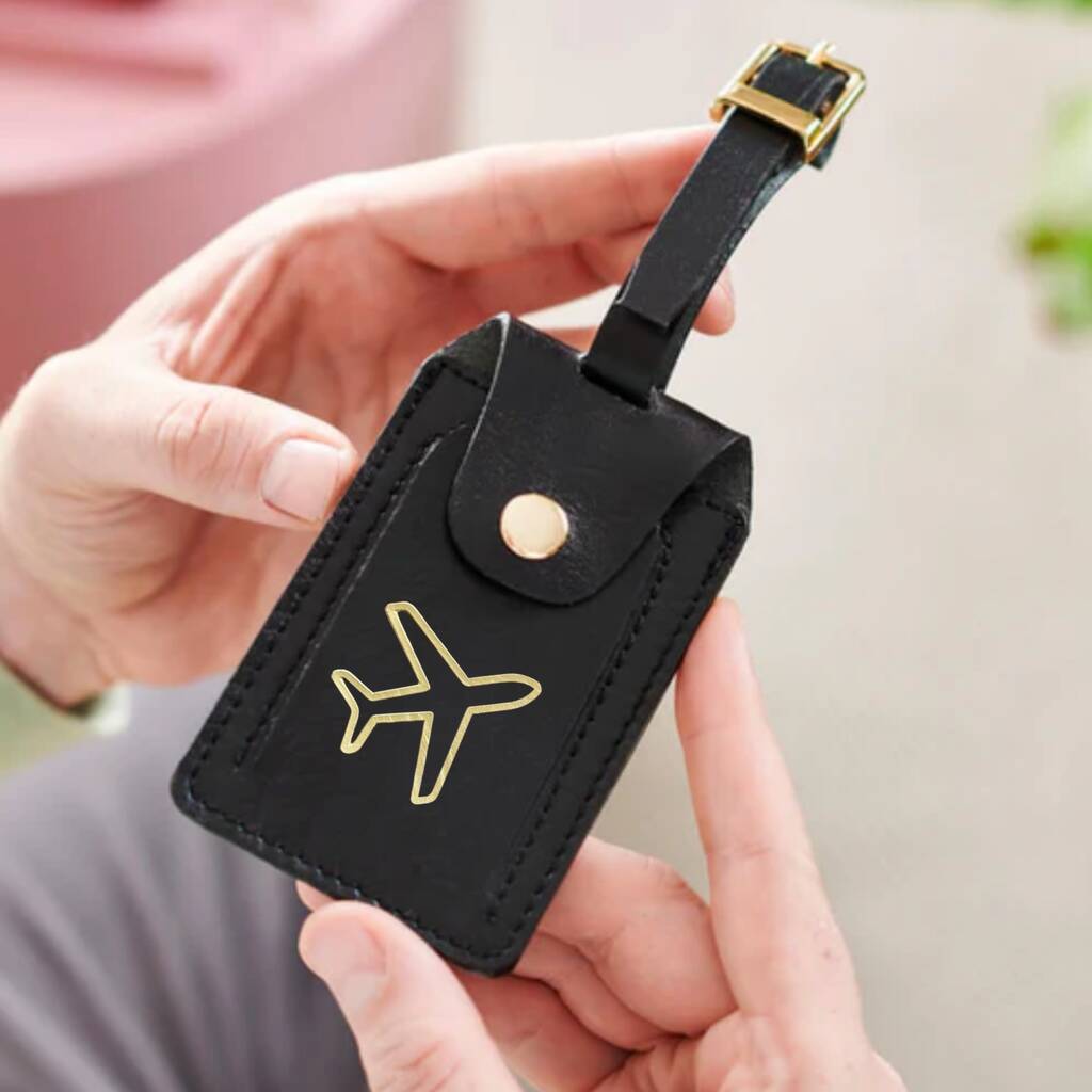 Personalised Plane Luxe Leather Luggage Tag