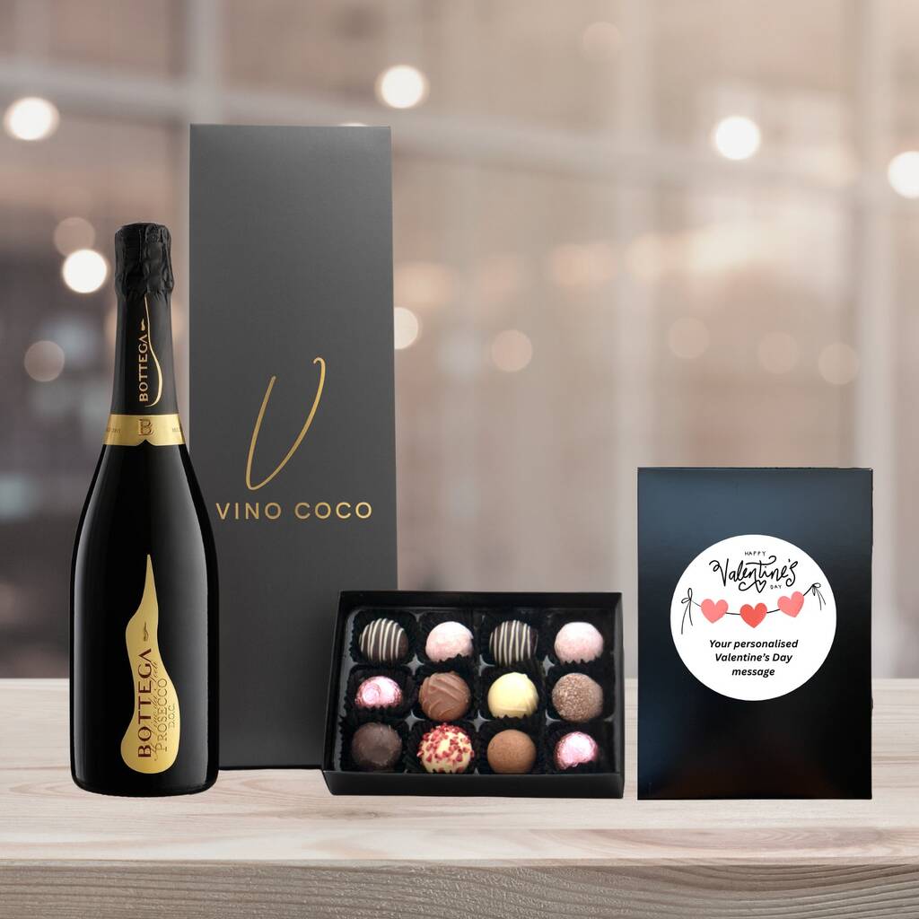 Vino Coco Personalised Valentine's Day Bottega Prosecco And Truffles Gift Set