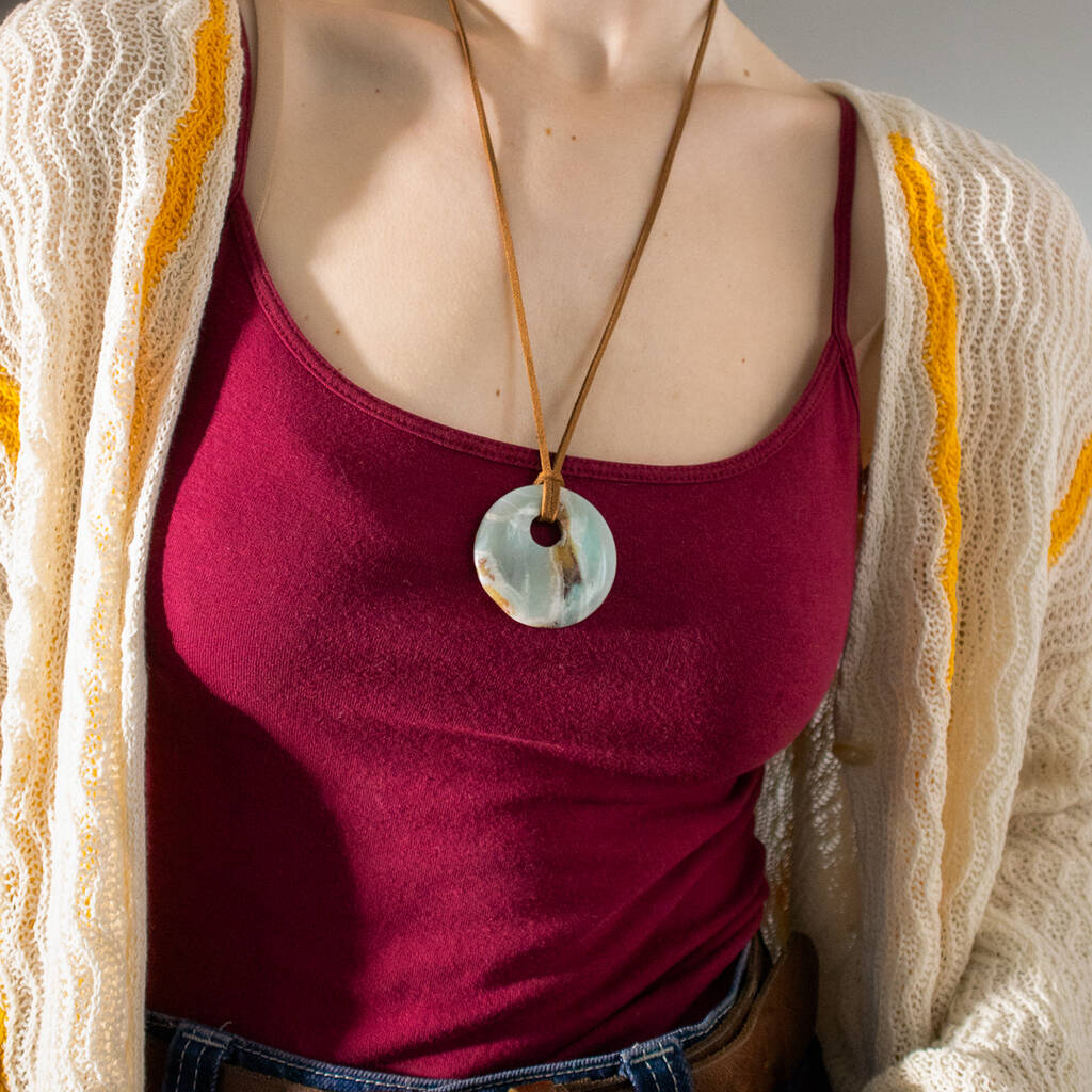Amazonite Gemstone Cord Long Pendant Necklace